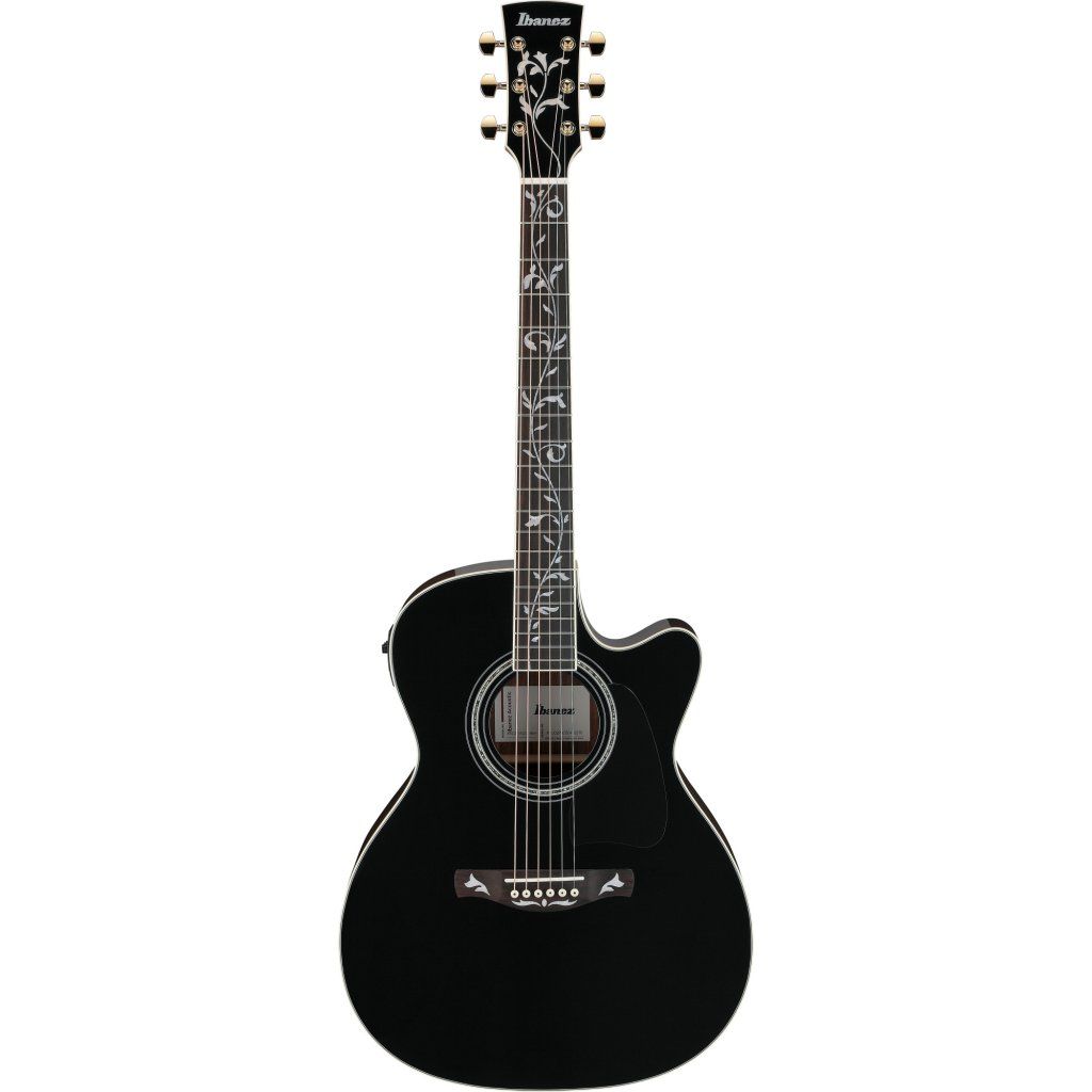 IBANEZ Artwood AC elektroakustická gitara 6-strunová - čierna lesklá vrchná doska, lesklá zadná doska a luby