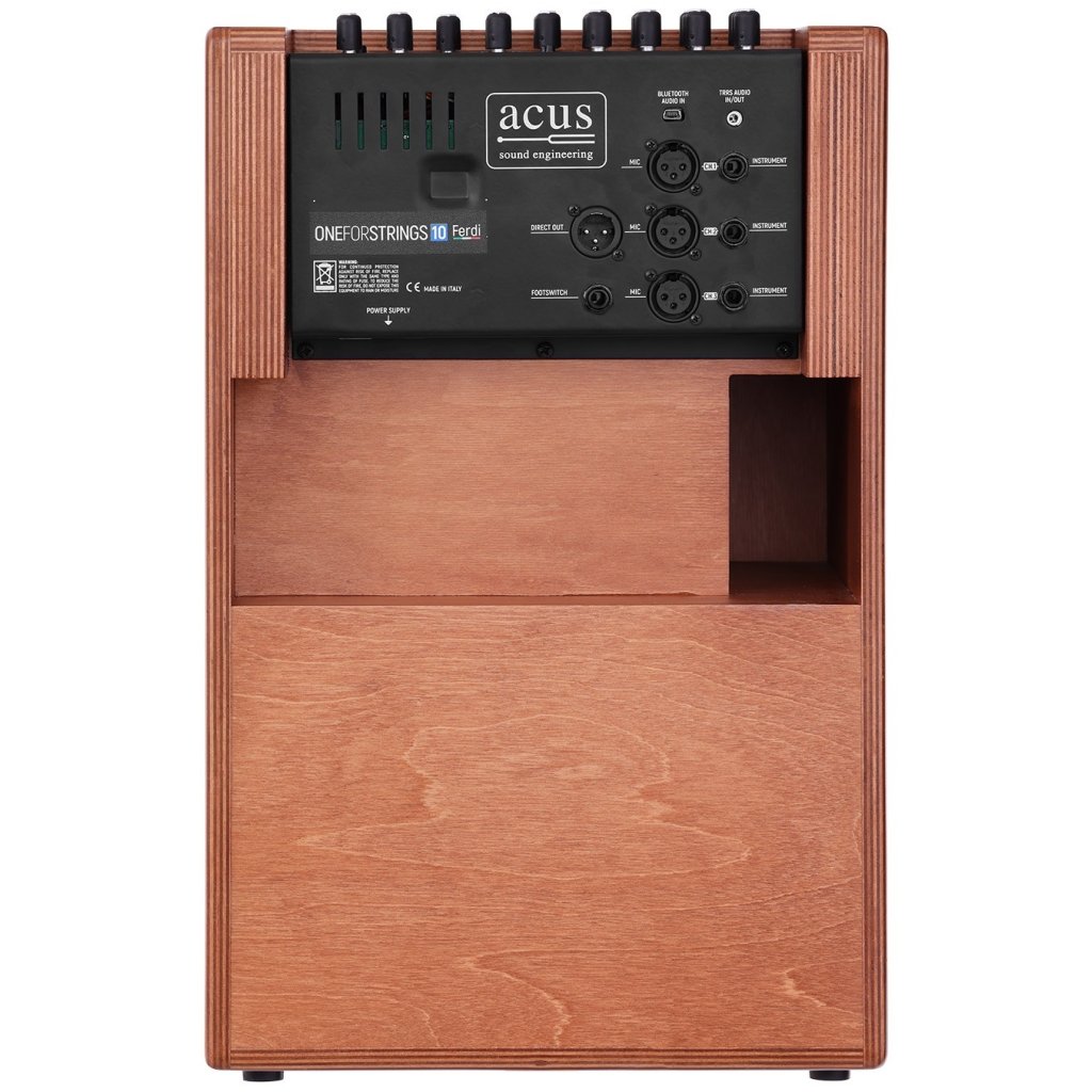Acus One ForStrings 10 Ferdi Wood je trojkanálové akustické kombo z radu Ferdi s novým rozhraním/systémom Ferdi-UXLogic, výkonom 250 wattov a dvoma vstupmi (mikrofónnym a nástrojovým) na každom kanáli. Každý kanál má k dispozícii samostatný trojpásmový ekvalizér, ovládač hlasitosti, gainu (-12 až +15 dB) a úrovne zvoleného zabudovaného efektu. Prvý kanál navyše ponúka sekciu kompresora a trojpolohový prepínač, ktorý mení charakter EQ podľa zvoleného typu nástroja (Flat - lineárna odozva, rovnaké EQ ako kanály 2 a 3, Bass - pre nástroje s bohatými basmi ako predstavuje akustická basgitara alebo kontrabas, Jazz - ideálny pre lubové/jazzové gitary). Efektová sekcia ponúka štyri typy efektov (Short Reverb, Long Reverb, Chorus, Delay) a možnosť nastavenia dĺžky reverbu, rýchlosti chorusu a delay time. Samostatnou kapitolou je Aux kanál s konektormi Bluetooth audio in a TRRS audio in/out, vďaka ktorým vám Acus One ForStrings 10 umožní počúvať a hrať do vašej obľúbenej hudby z telefónu, MP3 prehrávača alebo notebooku, nahrávať a naživo streamovať na populárnych sociálnych platformách. Kombo tiež ponúka možnosť zapojenia kondenzátorových mikrofónov vďaka voliteľnému fantómovému napájaniu, symetrický XLR Direct Out výstup pre prepojenie kombá s mixom alebo PA a vstup pre footswitch (nie je súčasťou balenia), cez ktorý je možné zapínať/vypínať zvolený efekt. Na napájanie samotného kombá použite pribalený adaptér. Konštrukcia kombá je zhotovená z preglejky, kabinet je osadený desaťpalcovým wooferom a palcovým tweeterom. Frekvenčný rozsah kombá zodpovedá 40Hz-20KHz, citlivosť 95,2 dB a maximálny akustický tlak 114 dB. Súčasťou balenia je napájací adaptér a Bluetooth prijímač Artesia BT-1. Spoločnosť Acus bola založená pred 40 rokmi v talianskom meste Recanati. Jej majitelia sa od samého začiatku zameriavali na akustické zosilňovače a kombá, ktoré by akustickým nástrojom neuberali nič na ich prirodzenom zvuku a iba ich jasne a čisto zosilneli. Všetky ich produkty sú navrhované s maximálnou starostlivosťou a ich cieľom je vždy produkovať čistý, takmer štúdiový zvuk. Nezanedbateľnú súčasť samozrejme tvorí dizajn ich výrobkov, a preto mu firma Acus venuje enormnú starostlivosť. Tým perfektne plní svoj cieľ akustickej aj vizuálnej harmónie.