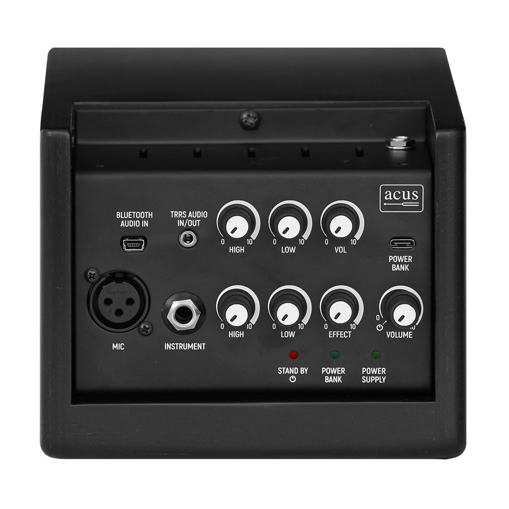 Acus One ForStrings 4 Ferdi Black je najkompaktnejším akustickým kombom z radu Ferdi s novým rozhraním/systémom Ferdi-UXLogic. Jedná sa o kompaktné ľahké kombo pre akustické nástroje s maximálnym výkonom 50 wattov, jedným kanálom s dvoma vstupmi (mikrofónnym a linkovým), ovládačom hlasitosti, dvojpásmovým ekvalizérom, ovládačom zabudovaného efektu reverb a Master Volume. Horný rad ovládačov (dvojpásmový ekvalizér a hlasitosť) patrí k Aux kanálu a konektorom Bluetooth audio in a TRRS audio in/out. Acus One ForStrings 4 vám tak umožní počúvať a hrať do vašej obľúbenej hudby z telefónu, MP3 prehrávača alebo notebooku, nahrávať a naživo streamovať na populárnych sociálnych platformách. Okrem napájania pribaleným adaptérom kombo ponúka aj možnosť napájania cez powerbanku (nie je súčasťou balenia), kedy maximálny výkon kombá zodpovedá 15 wattom. Konštrukcia kombá je zhotovená z preglejky, kabinet je osadený štvorpalcovým wooferom a 0,7 palcovým výškovým tweeterom. Frekvenčný rozsah kombá zodpovedá 70Hz-20KHz, citlivosť 82dB a maximálny akustický tlak 96dB. Súčasťou balenia je napájací adaptér a Bluetooth prijímač Artesia BT-1. Spoločnosť Acus bola založená pred 40 rokmi v talianskom meste Recanati. Jej majitelia sa od samého začiatku zameriavali na akustické zosilňovače a kombá, ktoré by akustickým nástrojom neuberali nič na ich prirodzenom zvuku a iba ich jasne a čisto zosilneli. Všetky ich produkty sú navrhované s maximálnou starostlivosťou a ich cieľom je vždy produkovať čistý, takmer štúdiový zvuk. Nezanedbateľnú súčasť samozrejme tvorí dizajn ich výrobkov, a preto mu firma Acus venuje enormnú starostlivosť. Tým perfektne plní svoj cieľ akustickej aj vizuálnej harmónie.