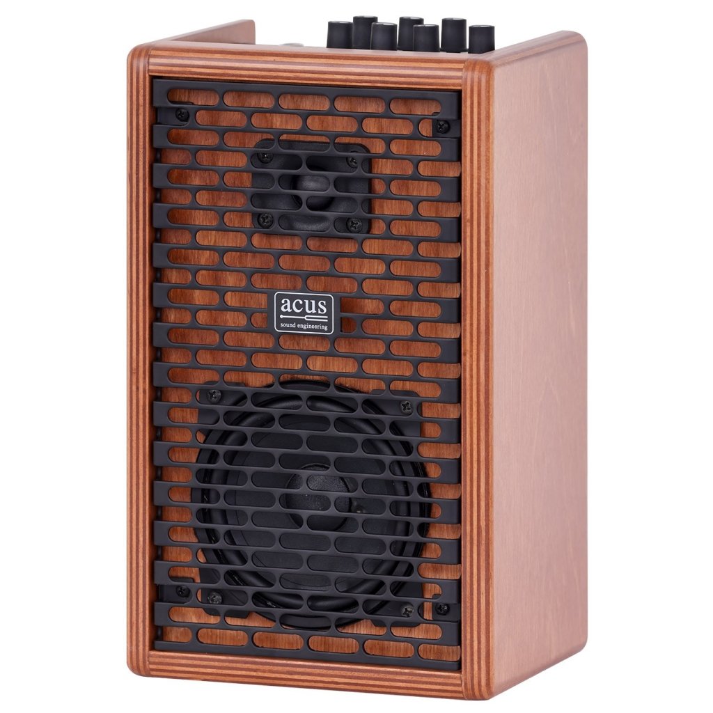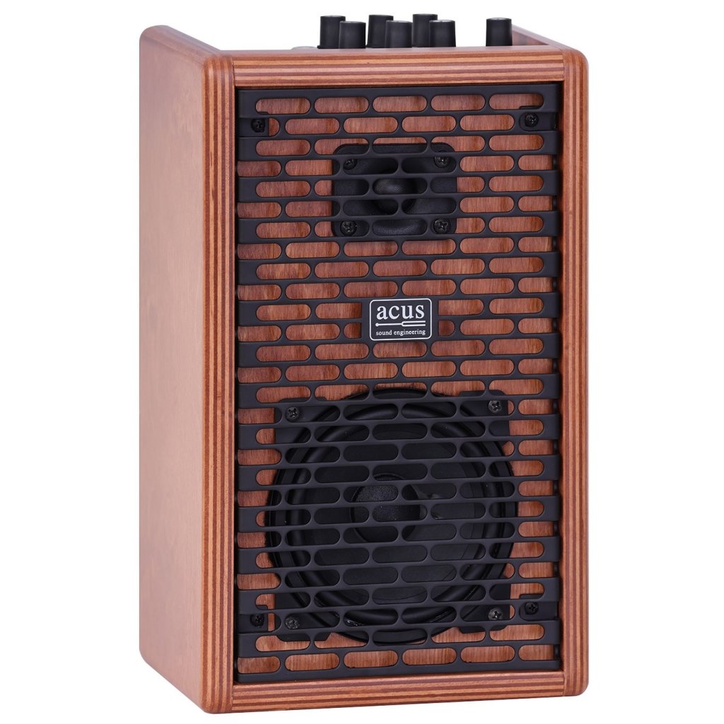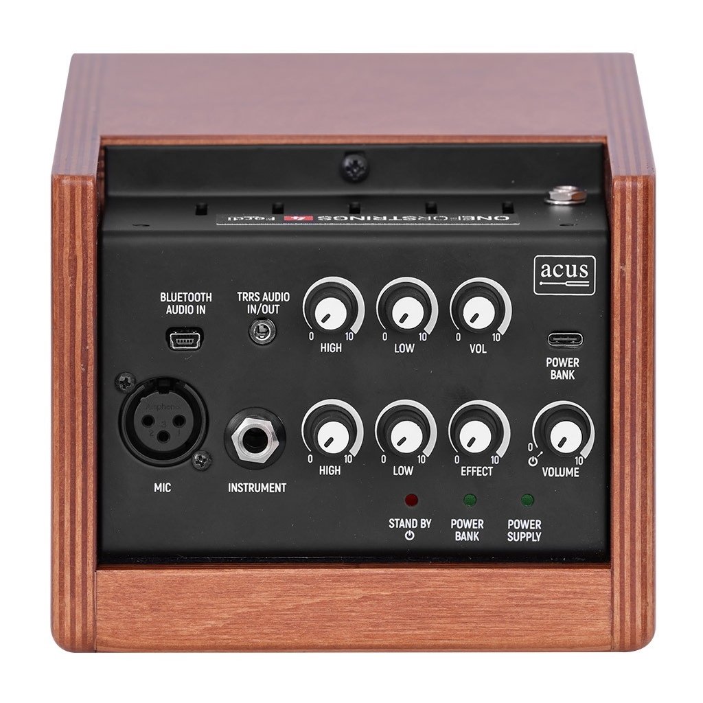 Acus One ForStrings 4 Ferdi Wood je najkompaktnejším akustickým kombom z radu Ferdi s novým rozhraním/systémom Ferdi-UXLogic. Jedná sa o kompaktné ľahké kombo pre akustické nástroje s maximálnym výkonom 50 wattov, jedným kanálom s dvoma vstupmi (mikrofónnym a linkovým), ovládačom hlasitosti, dvojpásmovým ekvalizérom, ovládačom zabudovaného efektu reverb a Master Volume. Horný rad ovládačov (dvojpásmový ekvalizér a hlasitosť) patrí k Aux kanálu a konektorom Bluetooth audio in a TRRS audio in/out. Acus One ForStrings 4 vám tak umožní počúvať a hrať do vašej obľúbenej hudby z telefónu, MP3 prehrávača alebo notebooku, nahrávať a naživo streamovať na populárnych sociálnych platformách. Okrem napájania pribaleným adaptérom kombo ponúka aj možnosť napájania cez powerbanku (nie je súčasťou balenia), kedy maximálny výkon kombá zodpovedá 15 wattom. Konštrukcia kombá je zhotovená z preglejky, kabinet je osadený štvorpalcovým wooferom a 0,7 palcovým výškovým tweeterom. Frekvenčný rozsah kombá zodpovedá 70Hz-20KHz, citlivosť 82dB a maximálny akustický tlak 96dB. Súčasťou balenia je napájací adaptér a Bluetooth prijímač Artesia BT-1. Spoločnosť Acus bola založená pred 40 rokmi v talianskom meste Recanati. Jej majitelia sa od samého začiatku zameriavali na akustické zosilňovače a kombá, ktoré by akustickým nástrojom neuberali nič na ich prirodzenom zvuku a iba ich jasne a čisto zosilneli. Všetky ich produkty sú navrhované s maximálnou starostlivosťou a ich cieľom je vždy produkovať čistý, takmer štúdiový zvuk. Nezanedbateľnú súčasť samozrejme tvorí dizajn ich výrobkov, a preto mu firma Acus venuje enormnú starostlivosť. Tým perfektne plní svoj cieľ akustickej aj vizuálnej harmónie.