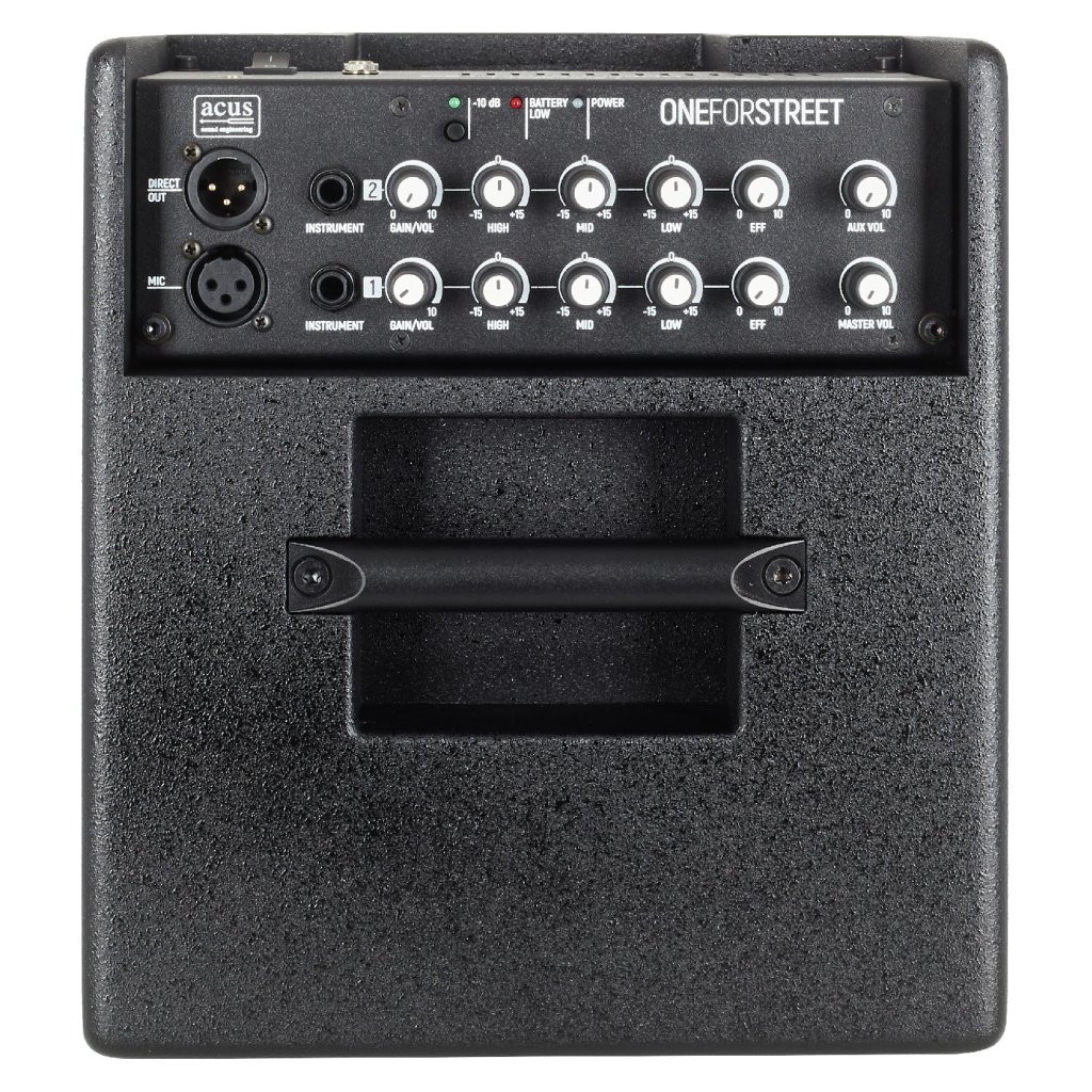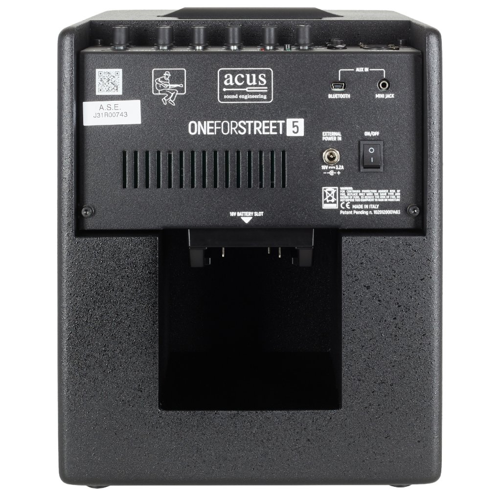 ONEFORSTREET 5 BLK je kombo pre akustické nástroje vhodné pre pouličných hudobníkov/buskerov. Ponúka prepracovaný dizajn nástrojov Acus, dva kanály s dvoma nástrojovými vstupmi a jedným mikrofónovým vstupom, moderné funkcie (kompatibilita s Bluetooth prostredníctvom dodávaného prijímača Artesia BT-1, streamovanie pripojením výstupu XLR Direct Out a konektora Aux In) a napájanie z batérie s výdržou až sedem hodín na jedno nabitie.