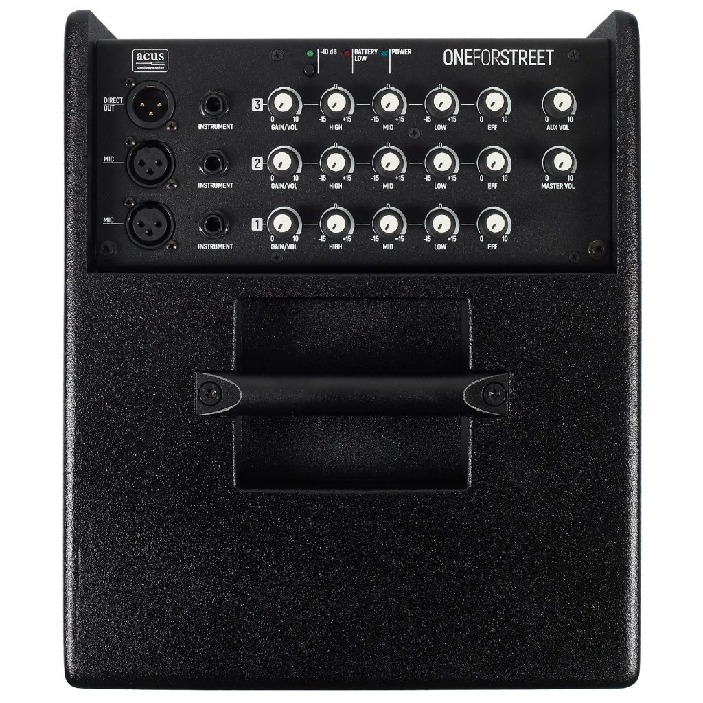 ONEFORSTREET 8 BLK je akustické nástrojové kombo vhodné pre pouličných hudobníkov/buskerov a menšie hudobné skupiny. Ponúka prepracovaný dizajn nástrojov Acus, tri kanály s tromi nástrojovými vstupmi a dvoma mikrofónovými vstupmi, moderné funkcie (kompatibilita s Bluetooth prostredníctvom dodávaného prijímača Artesia BT-1, streamovanie prostredníctvom výstupu XLR Direct Out a konektora Aux In) a napájanie z batérie s výdržou až sedem hodín na jedno nabitie.