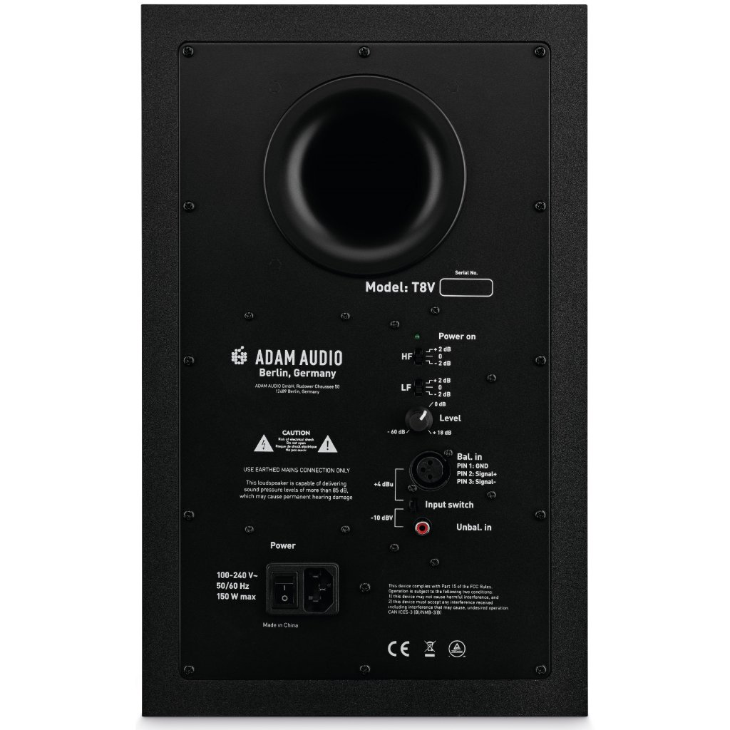 ADAM Audio T8V je nový cenovo dostupný dvojpásmový nearfield monitor navrhnutý špeciálne na produkciu hudby so silným basovým základom (techno, dub, hip hop, reggae a podobne). Je vhodný pre malé až stredne veľké domáce štúdiá a kontrolné miestnosti.