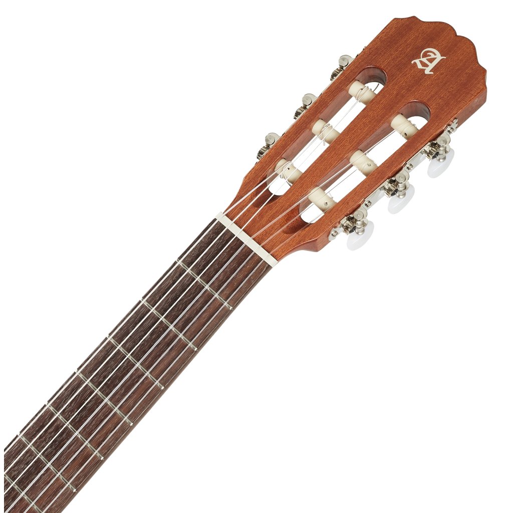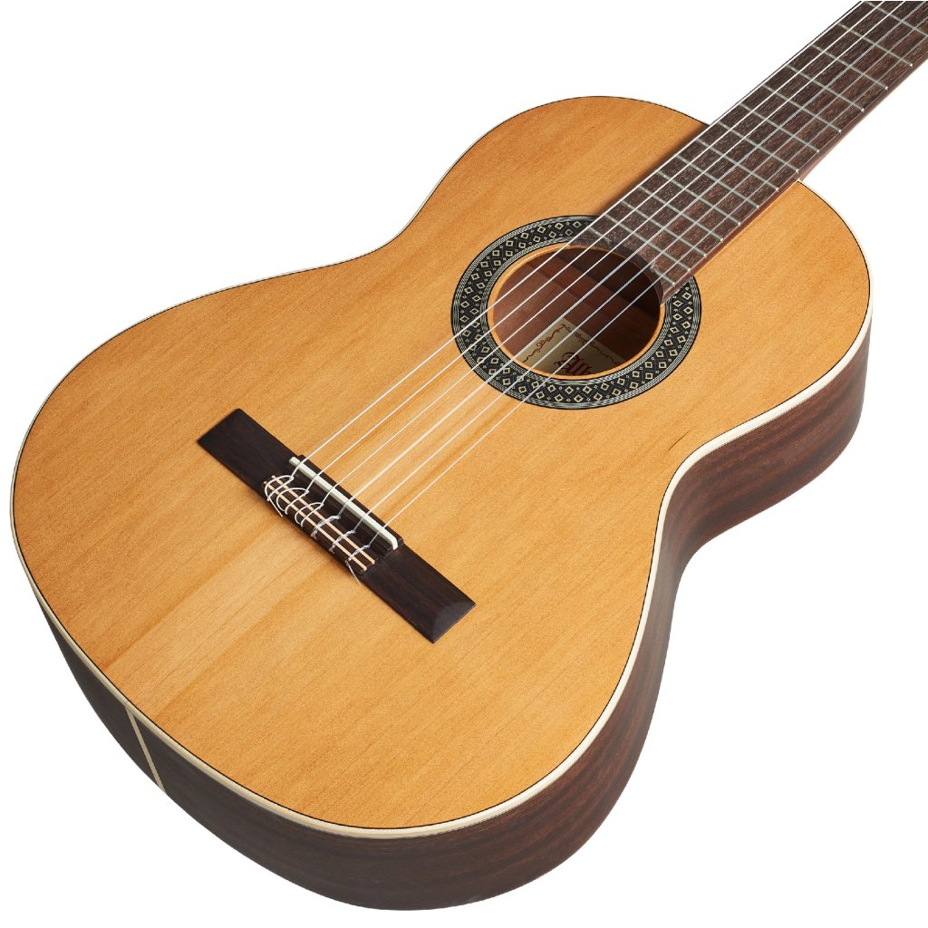 Predná doska modelu Alhambra 1 C HT vo veľkosti 3/4 je vyrobená z masívneho červeného cédra, zatiaľ čo zadná doska a luby sú z dyhovaného mahagónu. K ergonomicky tvarovanému mahagónovému krku je prilepený palisandrový hmatník osadený pražcami pakfong/alpaka. Struny sú uložené v poniklovaných ladiacich mechanikách a palisandrovom hmatníku prostredníctvom syntetického nultého a sedlového pražca. Pekné spracovanie podčiarkuje javorové lemovanie tela a logo spoločnosti na hlavici.