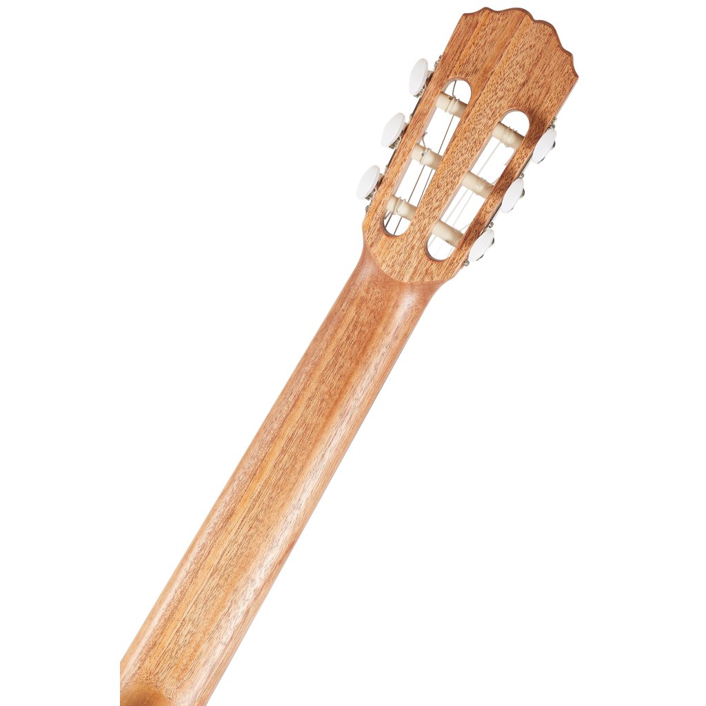 Predná strana ľavorukého modelu Alhambra 1 C HT (Hybrid Terra) je vyrobená z masívneho červeného cédra, zatiaľ čo zadná strana a luby sú z dyhovaného mahagónu. K ergonomicky tvarovanému mahagónovému krku je prilepený palisandrový hmatník osadený pražcami pakfong/alpaka. Struny sú uložené v poniklovaných ladiacich mechanikách a palisandrovom hmatníku prostredníctvom syntetického nultého a sedlového pražca. Pekné spracovanie podčiarkuje javorové lemovanie tela a logo spoločnosti na hlavici.