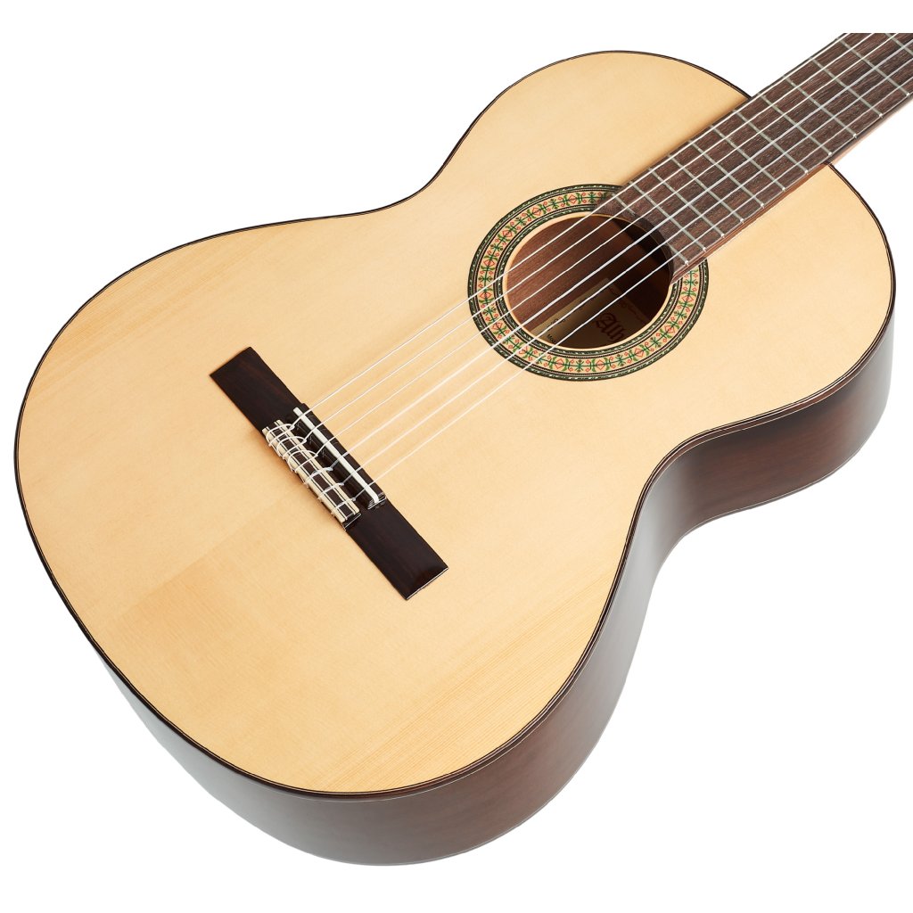 Rezonančná doska gitary je vyrobená z masívneho nemeckého smreka, čo znamená, že s pribúdajúcimi rokmi bude gitara čoraz lepšie hrateľná. Zadná doska a luby sú vyrobené z laminovaného mahagónu a telo je obklopené obojstrannou palisandrovou väzbou. K mahagónovému krku je prilepený hmatník z indického palisandru osadený devätnástimi pražcami pakfong. Hmatník je tiež vyrobený z indického palisandru a samozrejmosťou sú precízne ladiace mechaniky v klasickom dizajne.