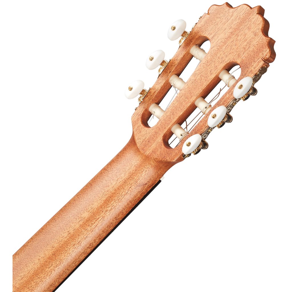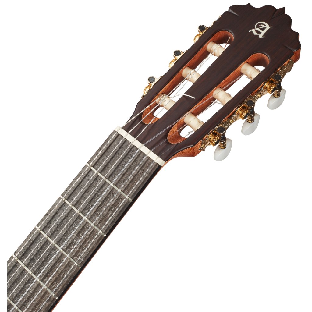K mahagonovému krku s ebenovou výztuhou je přilepen ebenový hmatník osazený devatenácti pražci. Stabilitu ladění zaručují kvalitní klasické pozlacené mechaniky. Tap Plate kolem ozvučnice nástroje neslouží k ochraně laku/povrchu nástroje jako pickguard, ale k perkusní hře prsty typické pro styl flamenka. Vizuální dojem podtrhuje zdobná rozeta a lemovka.