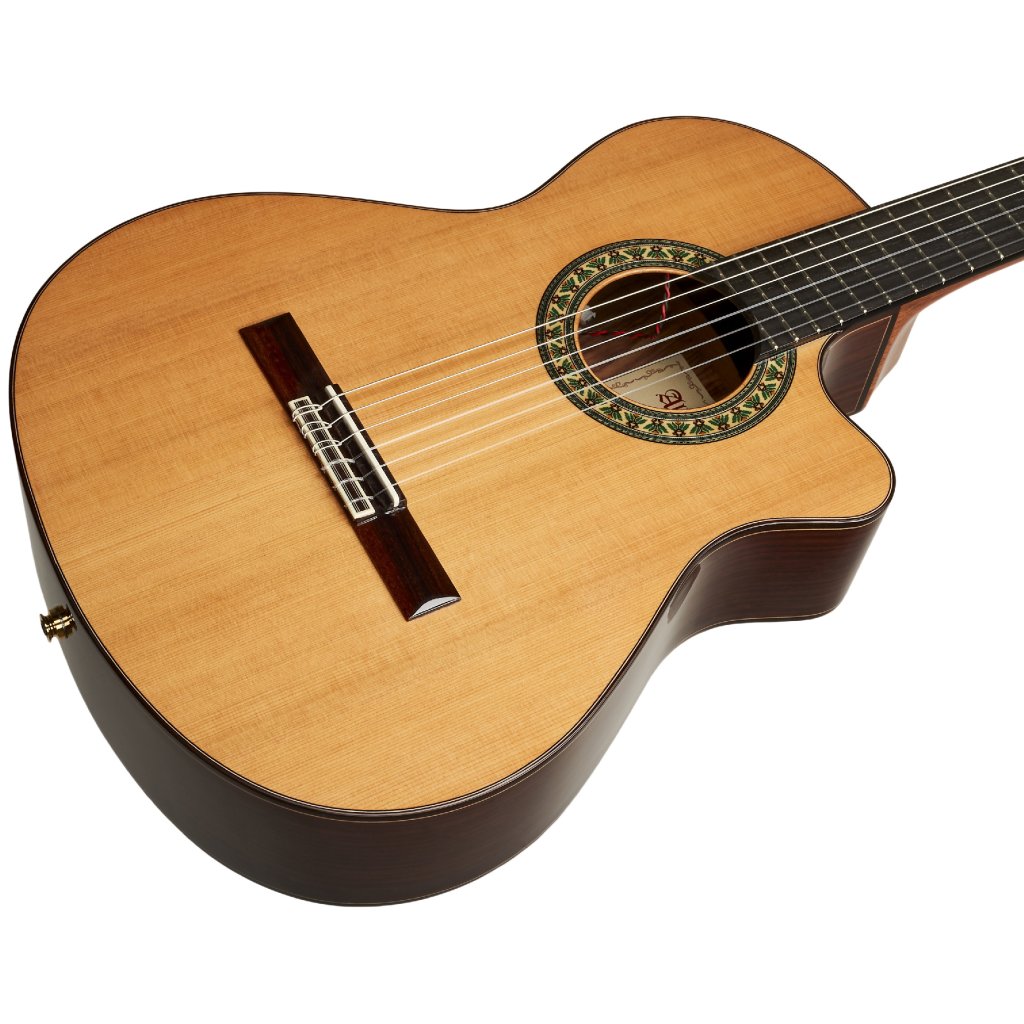 Tento konkrétny model je navyše vybavený kvalitnou elektronikou Fishman Flex M Blend, ktorá ponúka snímanie zvuku prostredníctvom piezoelektrického snímača a mikrofónu umiestneného pod cievkou. Akustický zvuk klasickej gitary tak dokáže obsiahnuť oveľa väčší priestor, než môžu ponúknuť steny vašej obývačky s pomocou zvukového systému.