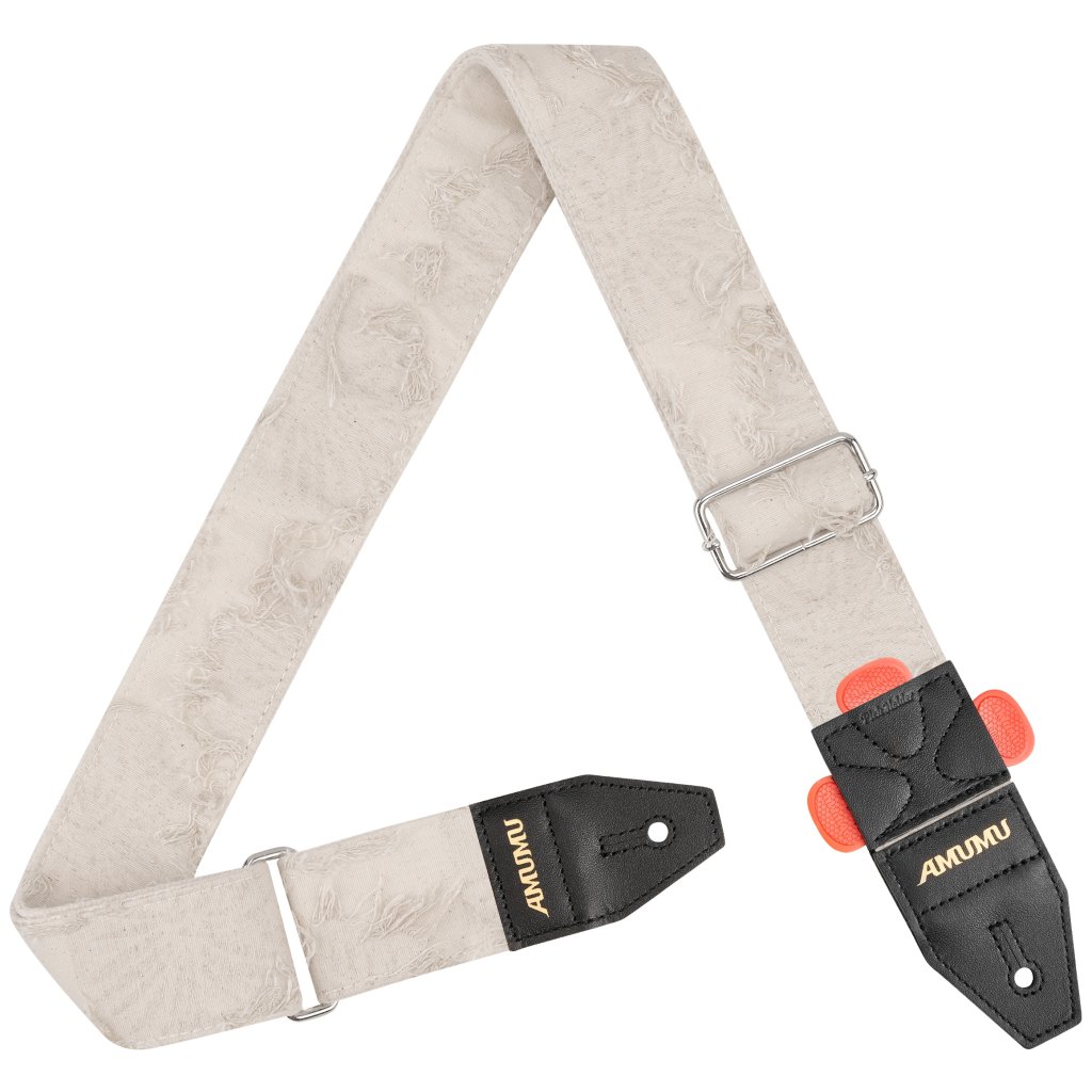 Kytarové popruhy značky AMUMU jsou známé svou odolností, spolehlivostí a kvalitou provedení. Díky široké nabídce modelů a barev si mezi nimi vybere opravdu každý. Popruh Distressed Texture na první pohled zaujme unikátním designem v elegantní bílé barvě. Vyroben je z odolné bavlněné tkaniny, která vám zajistí vysokou pevnost a dokonalé pohodlí. Kvalitní koncovky z pravé kůže se pak postarají o spolehlivé uchycení k nástroji a dlouhou životnost. Pro větší praktičnost je jedna z koncovek navíc vybavena třemi držáky na trsátka, které vám přijdou vhod, když uprostřed koncertu nebo cvičení omylem upustíte trsátko.
