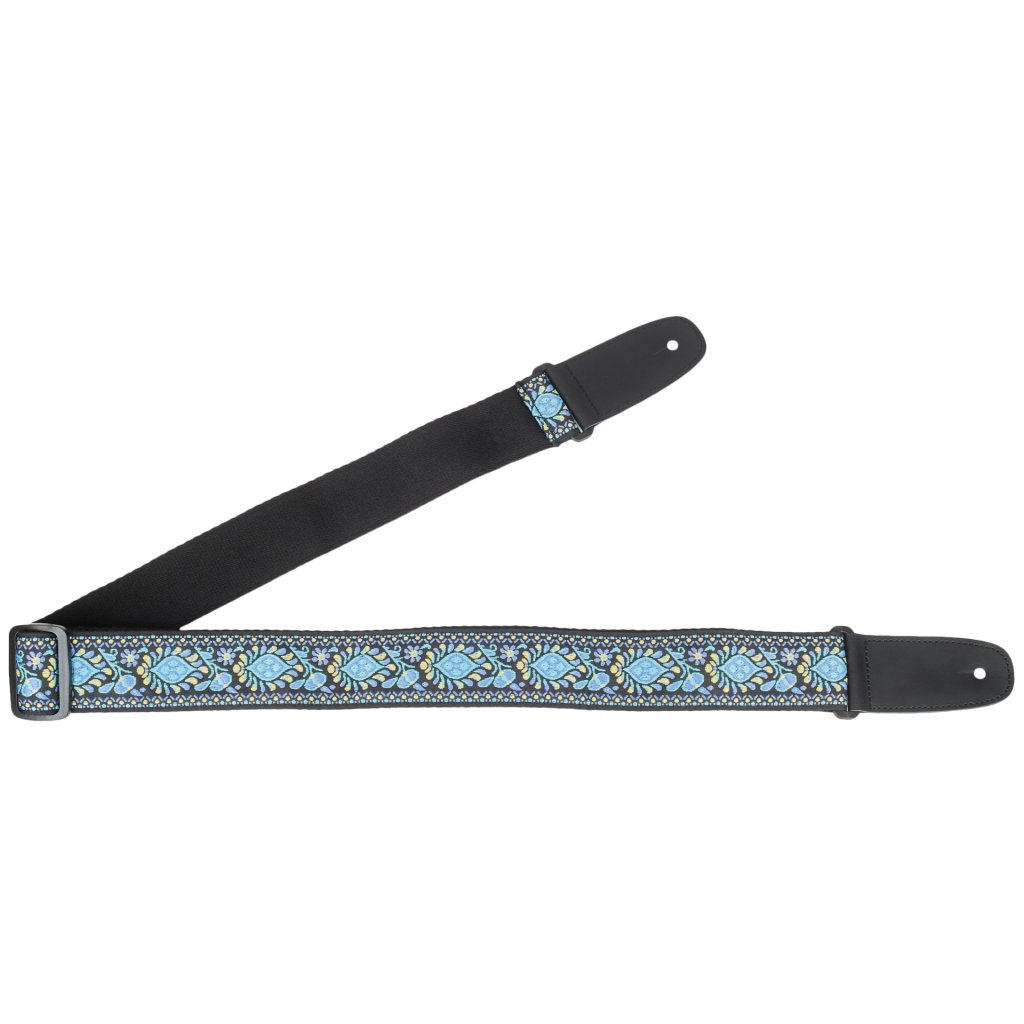 Bavlnený popruh Hippie Embroidery je štýlový popruh s tkaným vyšívaným vzorom na pevnom polyesteri. Chrbát je vyrobený z príjemnej bavlny, takže bude pohodlný aj pri dlhšom hraní, a táto kombinácia materiálov vyniká svojou dlhšou životnosťou. Samozrejmosťou je nastaviteľná dĺžka, ktorej rozpätie umožňuje popruh používať aj na iných nástrojoch ako gitary a basgitary, napríklad na ukulele alebo mandolíne. Konce popruhov sú vyrobené z prvotriednej kože, ktorá zaručuje pevné držanie nástroja, a jeden z nich je ozdobený logom spoločnosti.