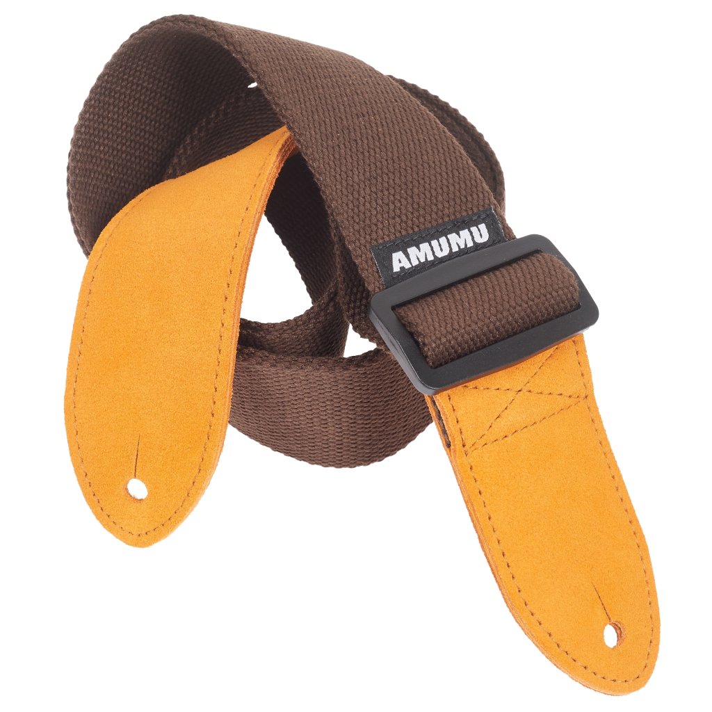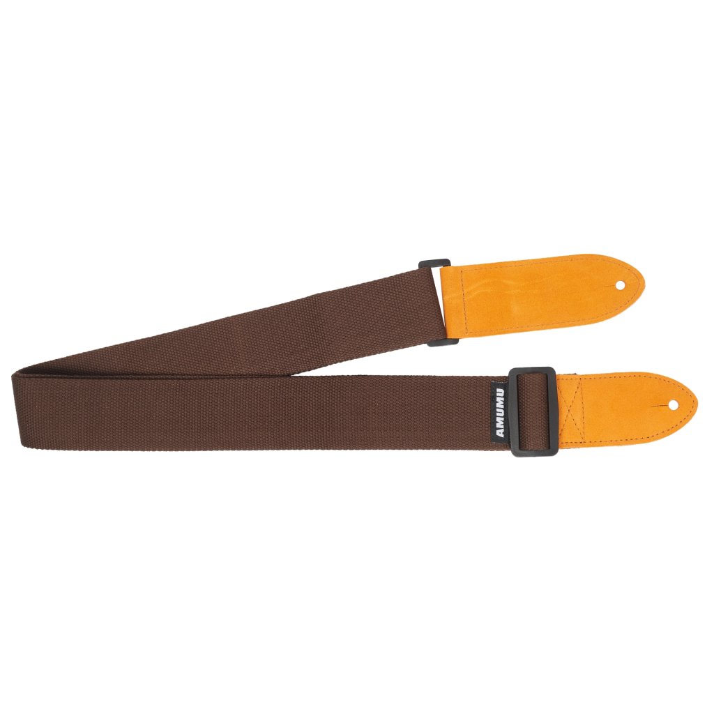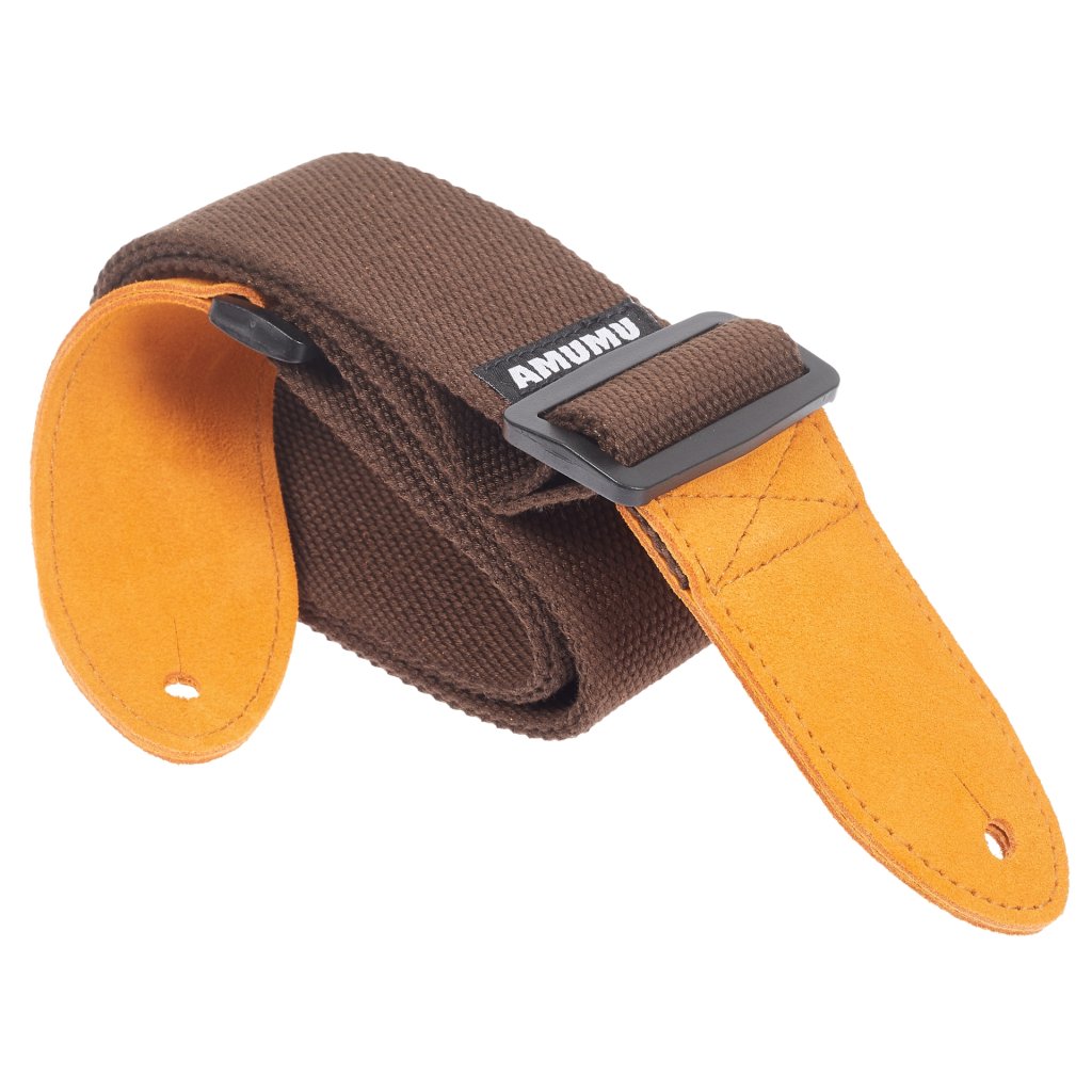 AMUMU Pure Cotton Strap Brown je vysokokvalitný bavlnený popruh. Dĺžka je nastaviteľná a vyhovuje väčšine hráčov. Vďaka tomu je možné tento popruh použiť okrem gitary a basgitary napríklad aj na ukulele alebo mandolínu. Konce sú vyrobené zo semišovej kože pre dlhšiu životnosť. V prípade, že máte na nástroji len jednu rolku, v balení nájdete šnúrku, pomocou ktorej je možné druhý koniec popruhu pripevniť k hlave nástroja. Ozdobou je nášivka s názvom spoločnosti.