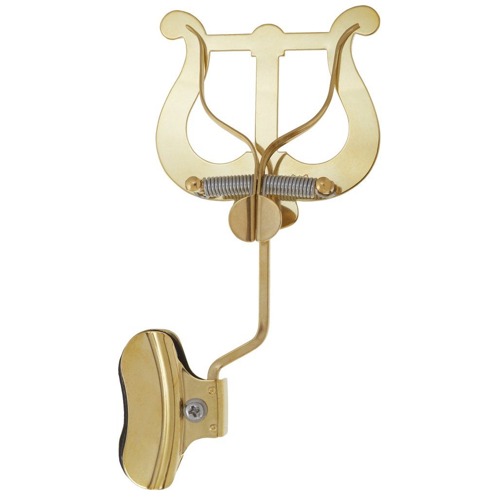 Mosadzná lyra (držák not) pre veľké trombóny s dvoma tlakovými podložkami a upevnením na zvonec nástroja.