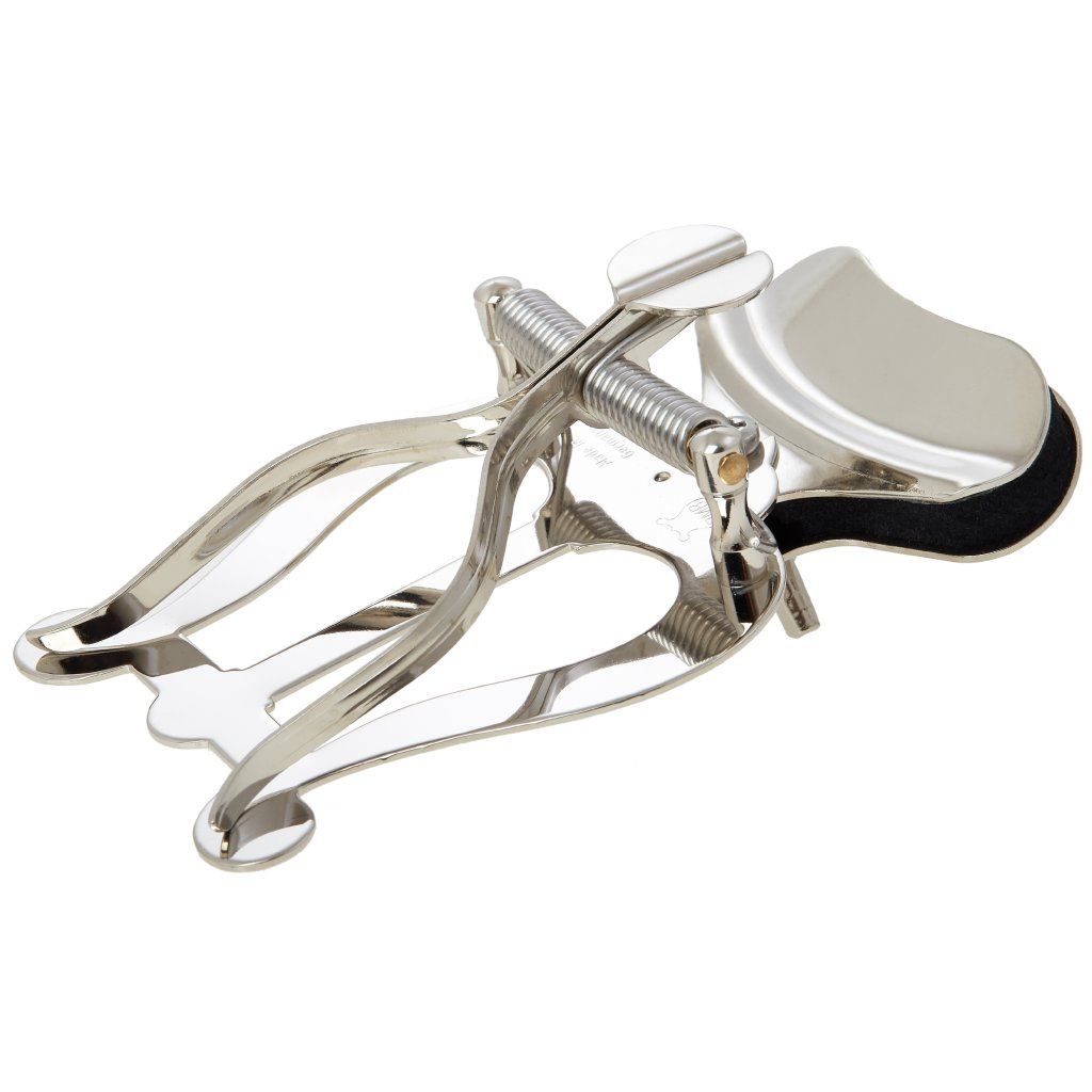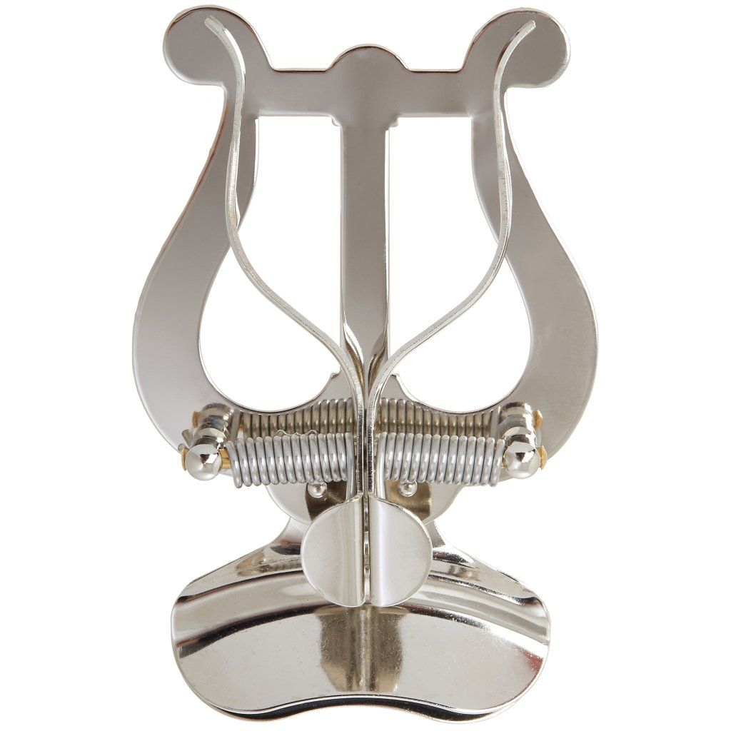 Poniklovaná lyra (držák notového zápisu) pre stredne veľké trúbky s dvoma tlakovými podložkami a upevnením na zvonec nástroja.