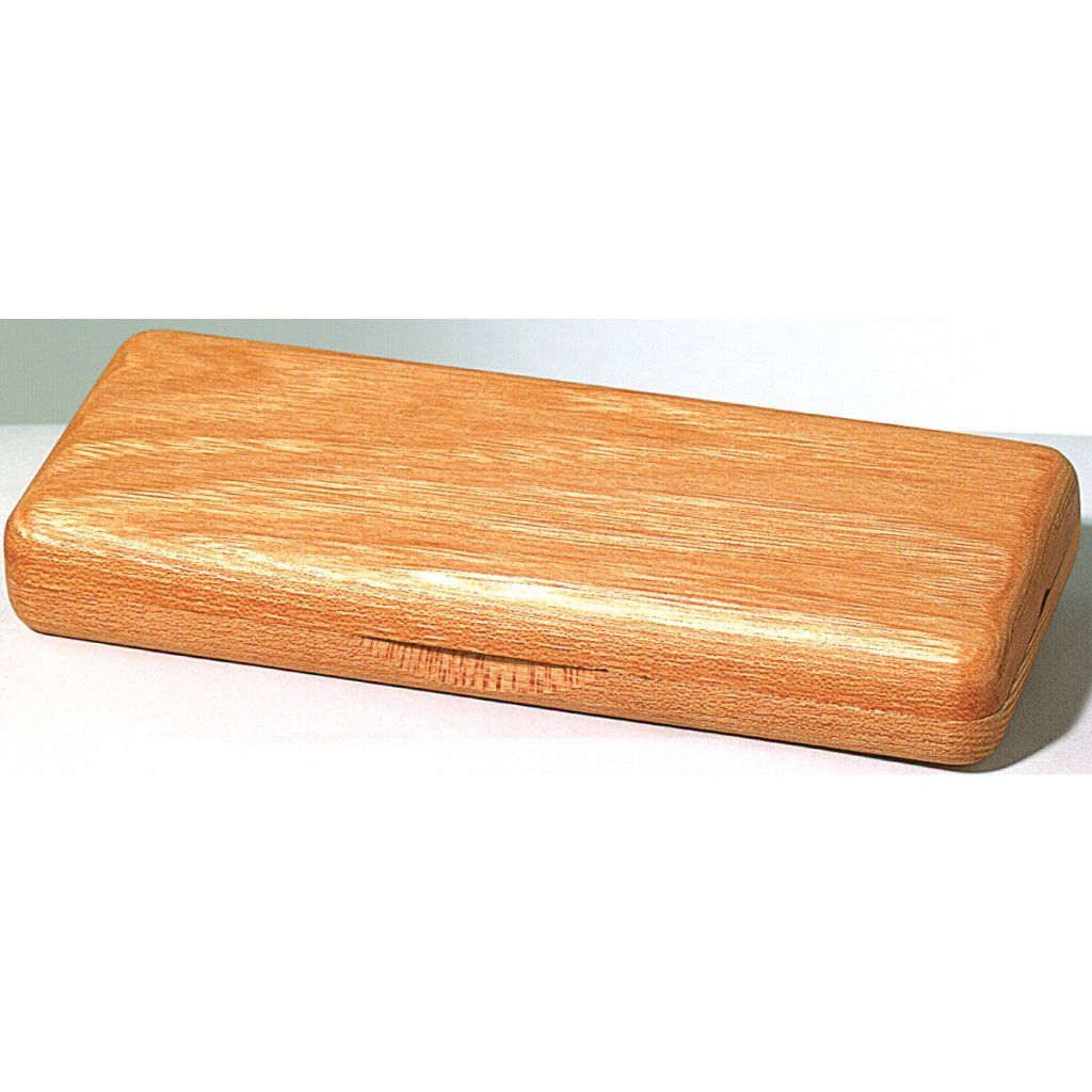Dřevěné pouzdro se sametovým interiérem pro tři hobojové strojky.