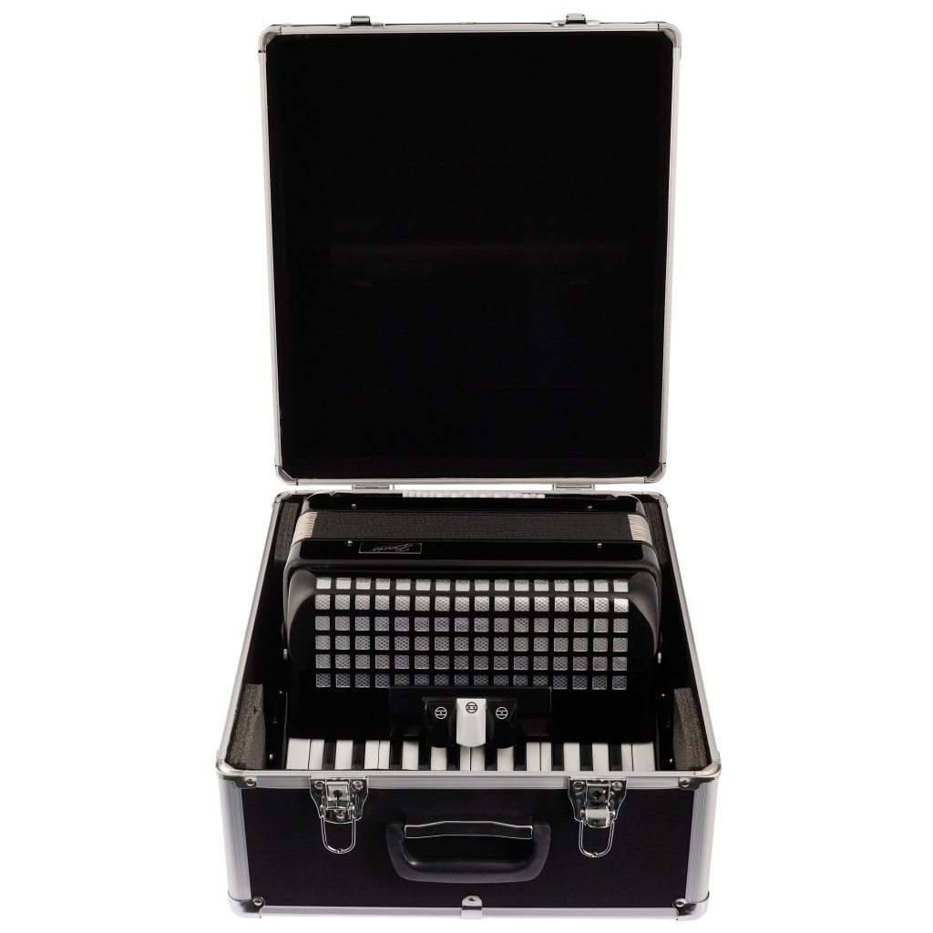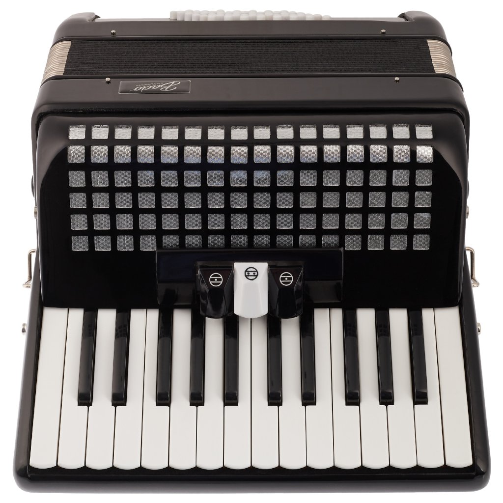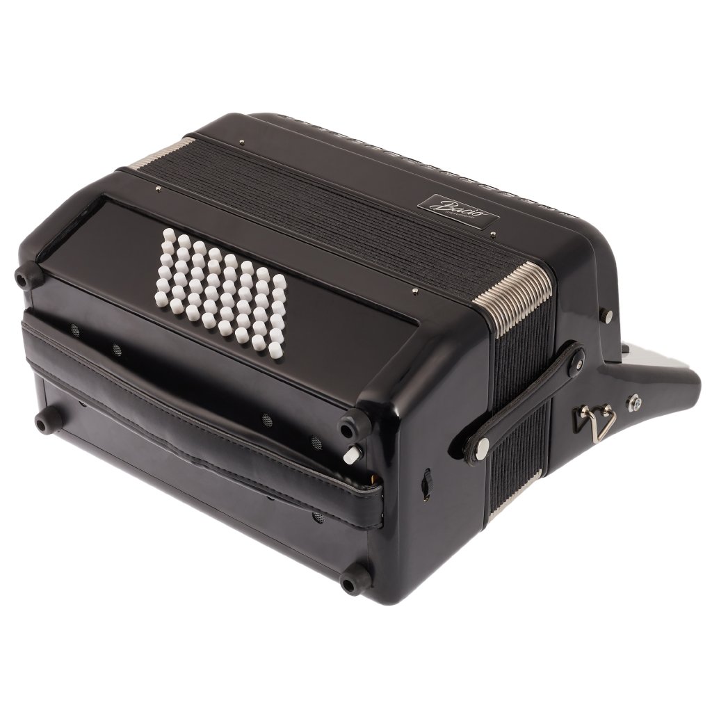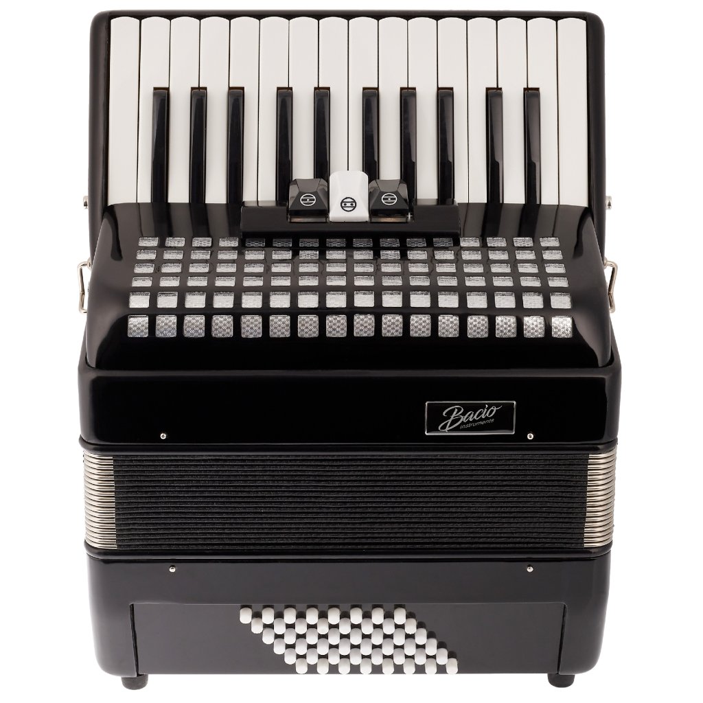 Značka Bacio ponúka cenovo dostupné hudobné nástroje vhodné pre úplných začiatočníkov. Klávesový akordeón AT2648B je vďaka kompaktnejšiemu tvaru a menšiemu počtu klávesov ideálny pre začínajúcich hudobníkov všetkých vekových kategórií. Prístroj sa dodáva v hliníkovom puzdre.