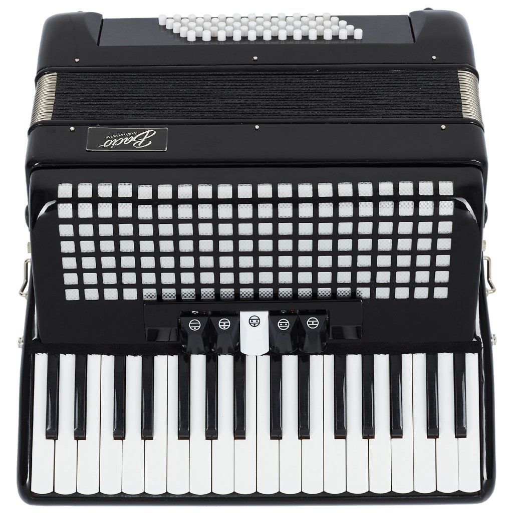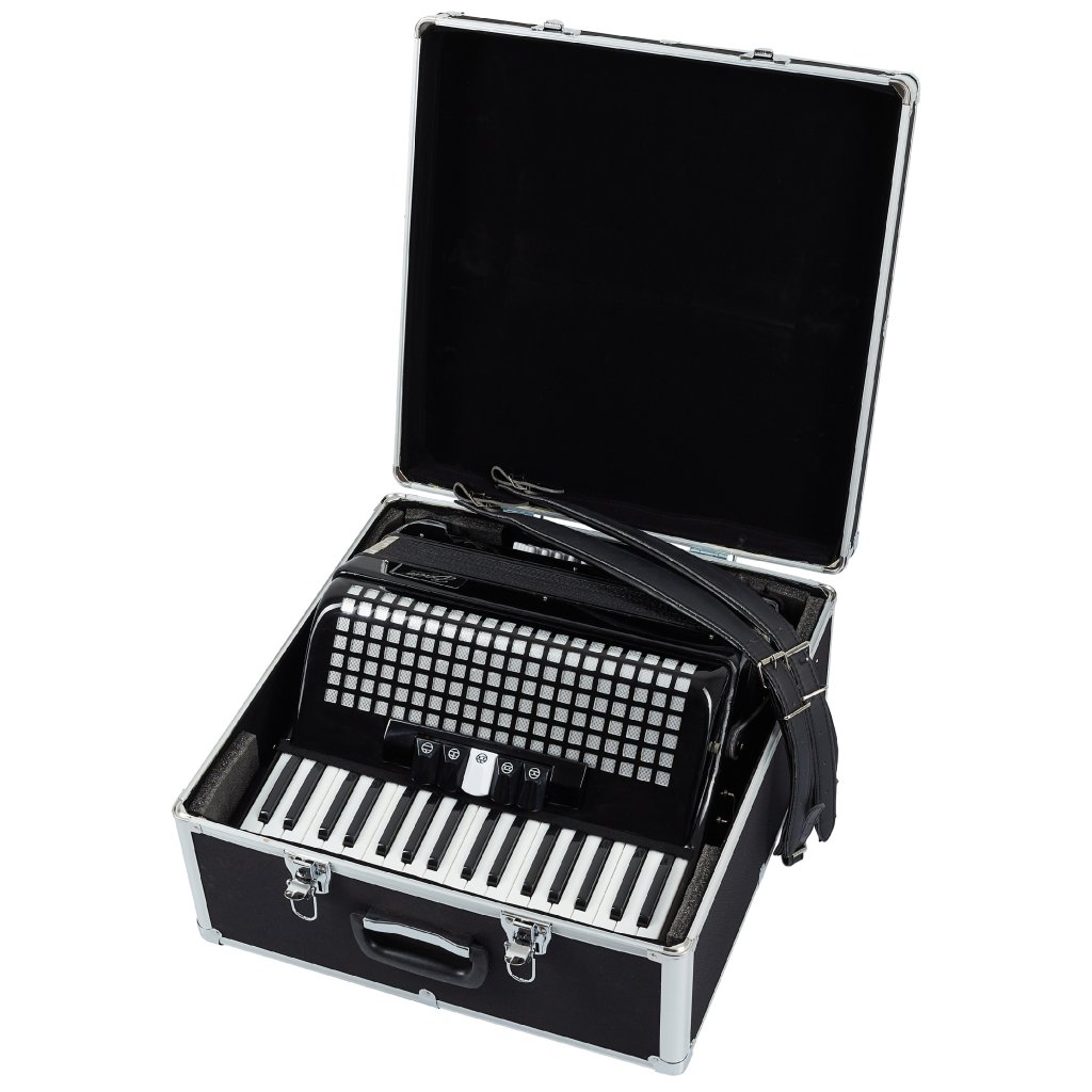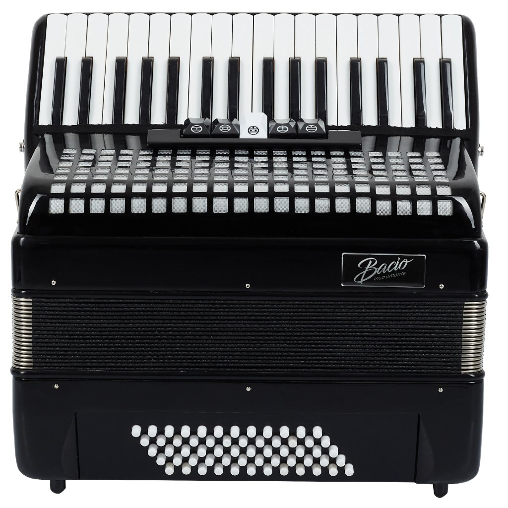 Značka Bacio ponúka cenovo dostupné hudobné nástroje vhodné pre úplných začiatočníkov. Klávesový akordeón AT3460 sa dodáva v hliníkovom puzdre.