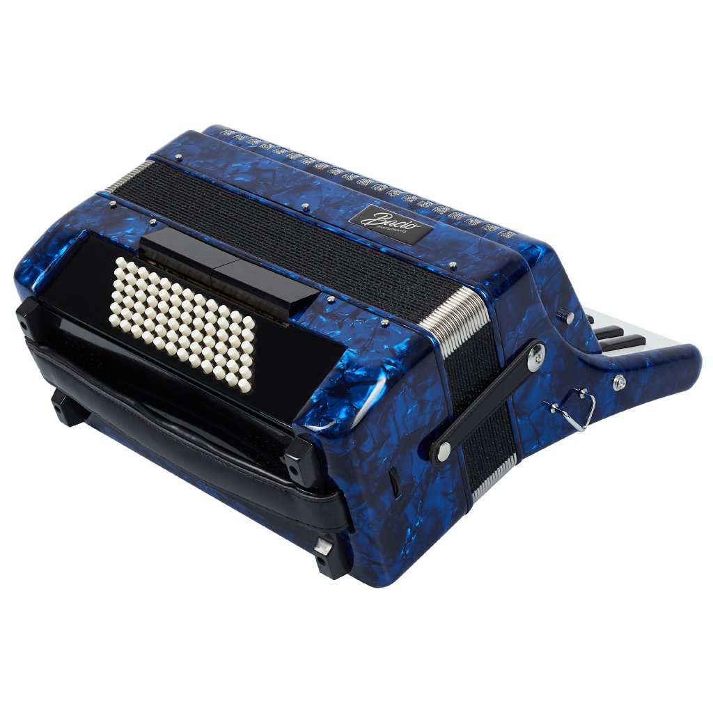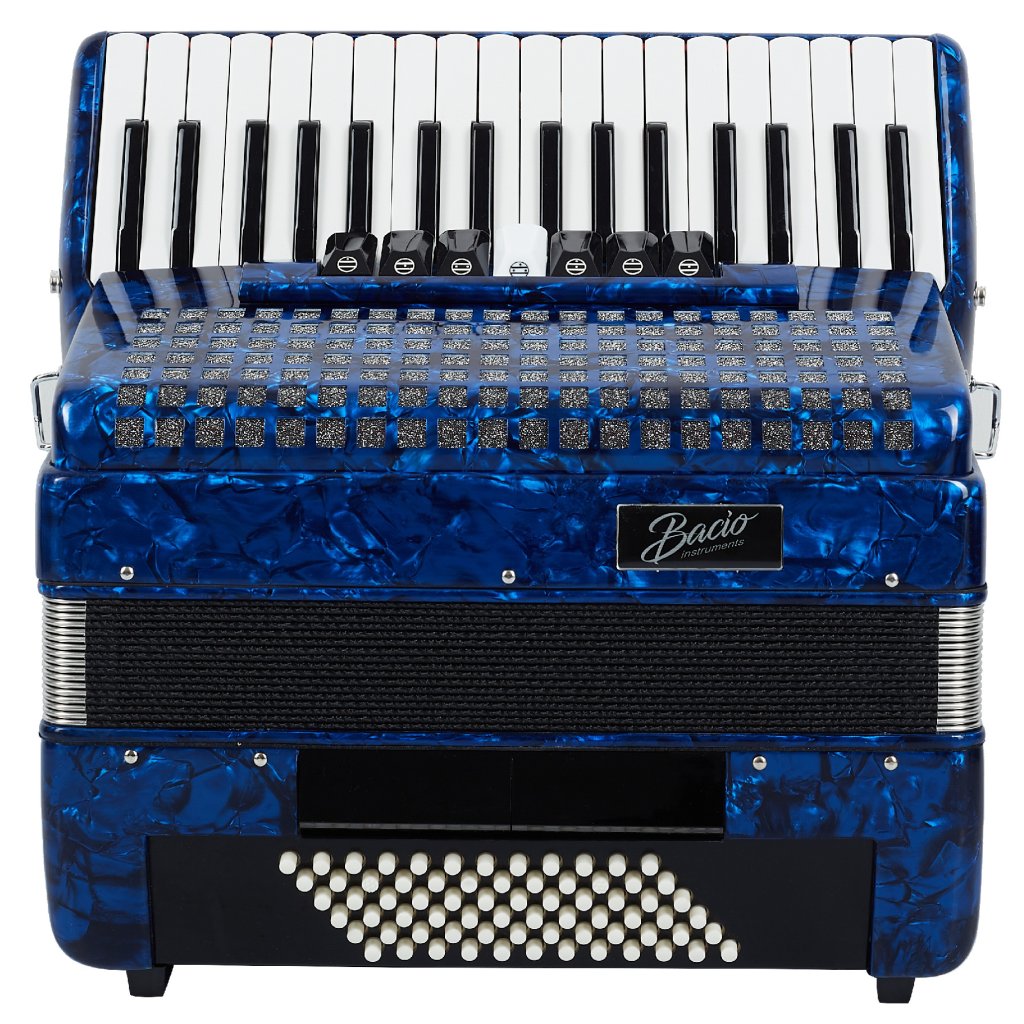 Značka Bacio ponúka cenovo dostupné hudobné nástroje vhodné pre úplných začiatočníkov. Klávesový akordeón AT3472B sa dodáva v hliníkovom puzdre.