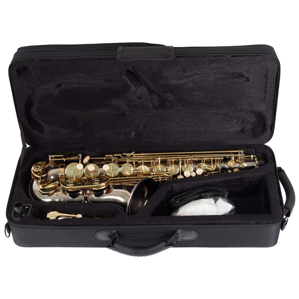 BAS-100N alt saxofón s mosadzným poniklovaným telom a pozlátenými klapkami. Saxofón sa dodáva v puzdre s náustkom, ligatúrou a príslušenstvom.