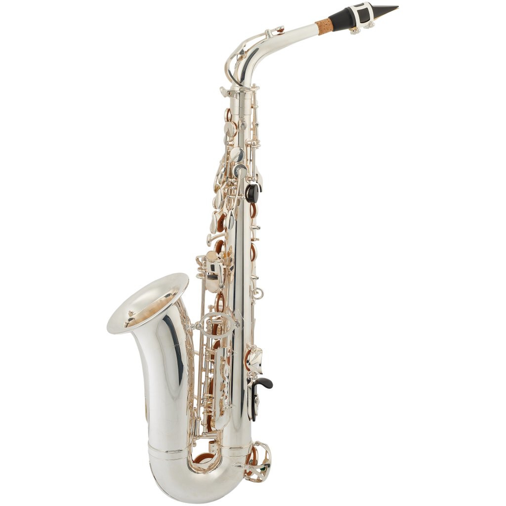 Altový saxofon BAS-100SG nabízí postříbřené tělo a mosazené pozlacené klapky. Saxofon je dodáván v měkkém pouzdru spolu s příslušenstvím (popruh, vytěrák).