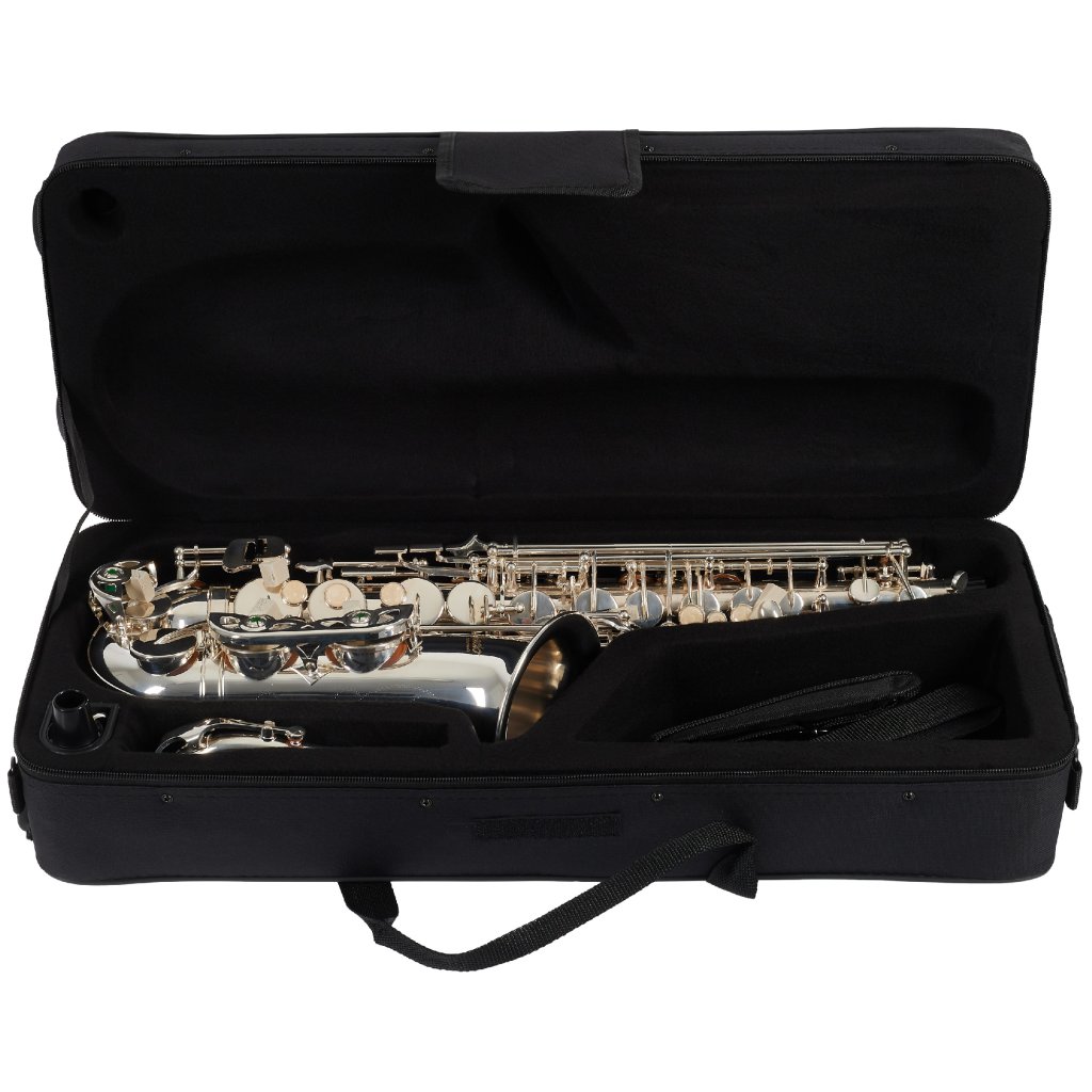Altový saxofón BAS-100SG má postriebrené telo a mosadzné klapky. Saxofón sa dodáva v mäkkom puzdre s príslušenstvom (remienok, ciferník).