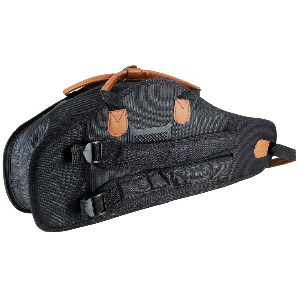 Toto ľahké puzdro na alt saxofón od spoločnosti Bacio je vyrobené z odolnej syntetickej tkaniny a je vybavené dvoma vonkajšími vreckami na zips na uloženie drobného príslušenstva, praktickou dvojitou rukoväťou na jednoduchú manipuláciu s puzdrom alebo chrbtovými popruhmi, takže ho možno nosiť ako batoh.