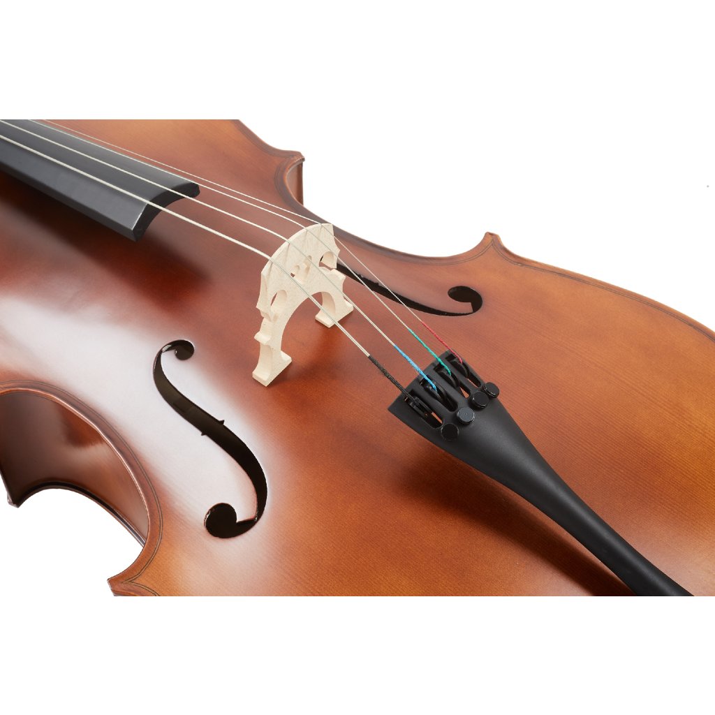 Táto violončelová súprava je ideálna najmä pre začiatočníkov, ktorí nechcú do svojho prvého nástroja investovať veľké sumy peňazí. Celý nástroj je vyrobený z masívneho dreva, konkrétne zo smrekovej rezonančnej dosky a ľahko fládrovaného javora na bokoch a zadnej strane. Hmatník a ladiace kolíky sú vyrobené z moreného hruškového dreva a strunník je kovový. Nástroj je povrchovo upravený matným hnedým lakom a súčasťou balenia je aj základné puzdro a sláčik, navyše sa dodáva priamo od výrobcu nastavený a pripravený na používanie.