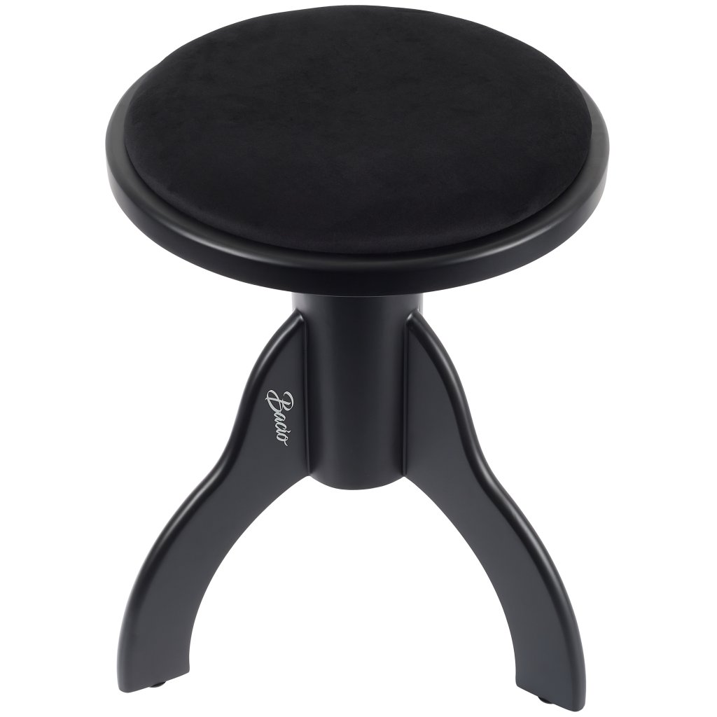 Klasická kulatá stolička ke klavíru v elegantním černém provedení, která perfektně doplní téměř jakýkoliv interiér. Nastavitelná výška zajistí ideální přizpůsobení pro každého hráče a pohodlný sedák se postará o dokonalý komfort i při dlouhém cvičení. Tato verze má matný semišový sedák.