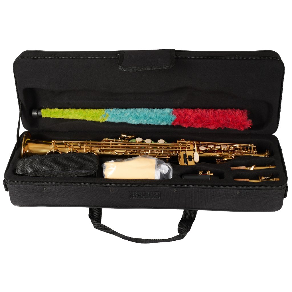 Sopránový saxofón BSS-100 má mosadzné telo, rovný krk a zlatý lak. Saxofón sa dodáva v mäkkom puzdre spolu s náustkom, ligatúrou a príslušenstvom (remienok, ciferník).