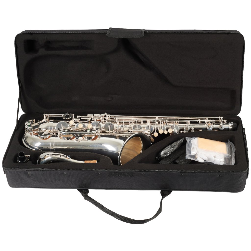 Tenor saxofón BTS-100SG má postriebrené telo a mosadzné klapky. Saxofón sa dodáva v mäkkom puzdre s príslušenstvom (remienok, ciferník).