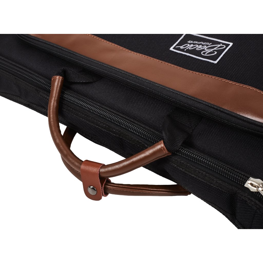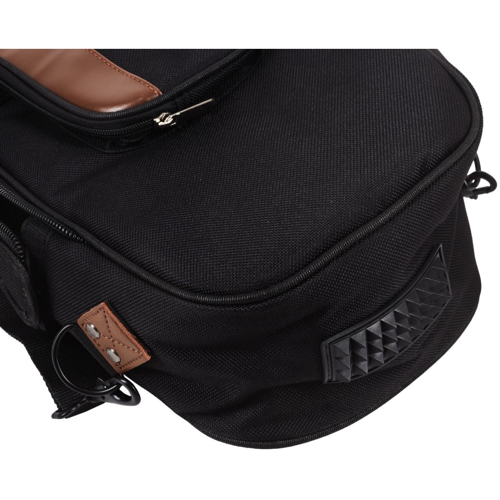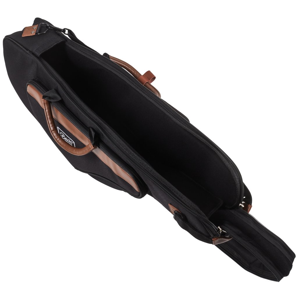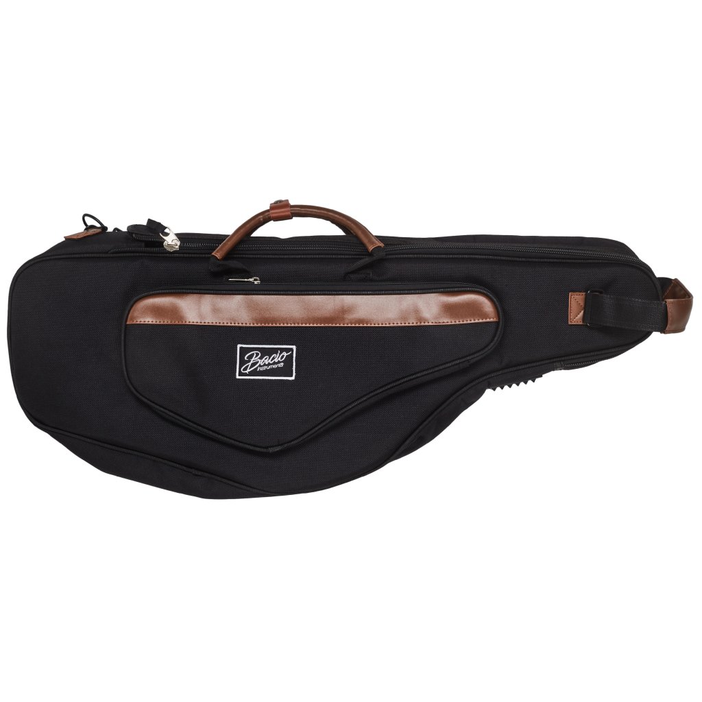 Ľahké puzdro na tenorový saxofón Bacio je vyrobené z odolnej syntetickej tkaniny. Puzdro je vybavené vonkajším vreckom na drobné príslušenstvo, zapínaním na zips, dvojitou koženkovou rukoväťou na jednoduchú manipuláciu, ramennými popruhmi, takže ho môžete nosiť ako batoh, a bezpečnostnými prvkami pre časti, ktoré prichádzajú do kontaktu s povrchom.