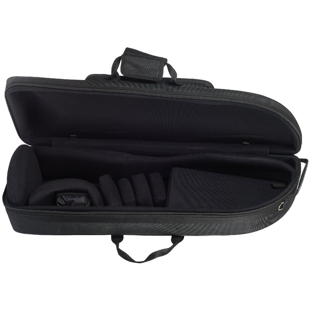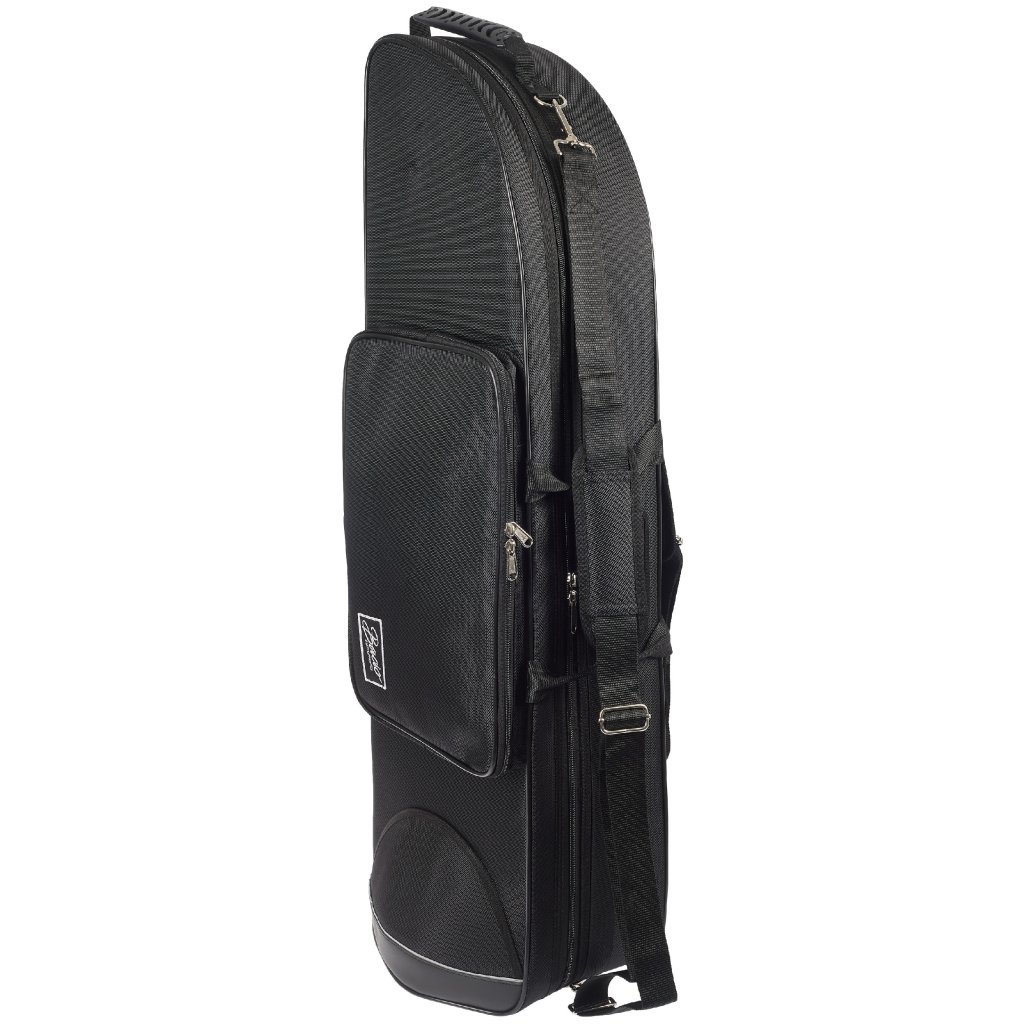 Ľahké puzdro na trombón Bacio je vyrobené z odolnej syntetickej tkaniny. Puzdro ponúka vonkajšie vrecko na uloženie drobného príslušenstva, vnútorné polstrované bloky na bezpečné upevnenie nástroja, zapínanie na zips, dvojité držadlo na ľahkú manipuláciu, ramenný popruh a dva odnímateľné popruhy, takže sa dá nosiť ako batoh.