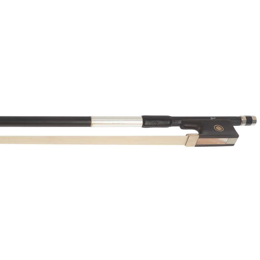 Tento houslový smyčec ocení zejména pokročilejší hráči, kterým nabídne kvalitní zpracování a materiály, které v této cenové relaci jen tak jinde nenajdete. Jeho základem je osmihranná hůlka z velice odolných uhlíkových vláken, opatřena ebenovou žabkou s perleťovým vykládáním. Prut je pak u žabky ovíjen drátkem z postříbřené mědi a opatřen koženým gripem pro pohodlný úchop. Kromě toho je smyčec vybaven přírodními koňskými žíněmi.