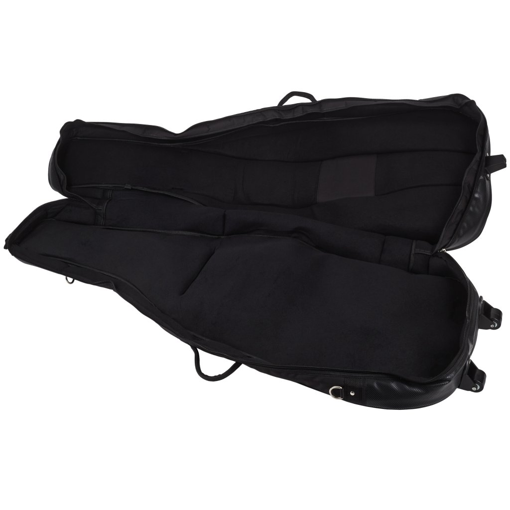 Puzdro na violončelo veľkosti 4/4 z ľahkej a nepremokavej tkaniny Oxford. Je vybavené 20 mm hrubým polstrovaním pre väčšie pohodlie a bezpečnosť nástroja a vreckom na sláčik na hornej strane obalu.