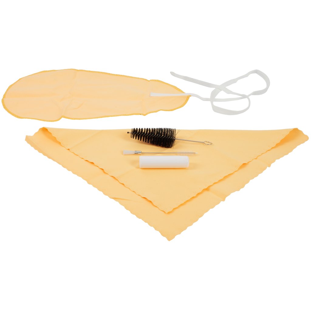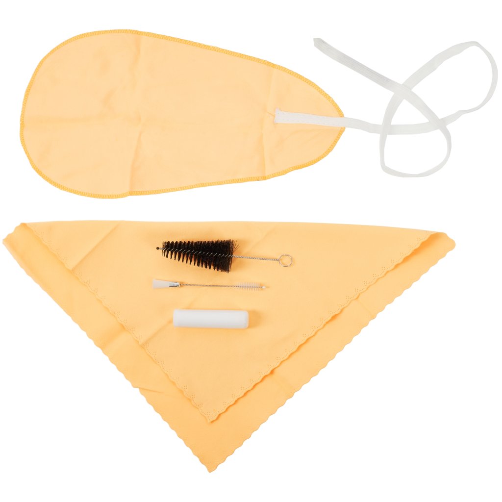 Súprava Bacio Clarinet Care Kit obsahuje utierku (tampón na čistenie vreckoviek), kefku na čistenie náustka, handričku, mazadlo na korok a kefku na čistenie mechaniky (ventily, pružiny).
