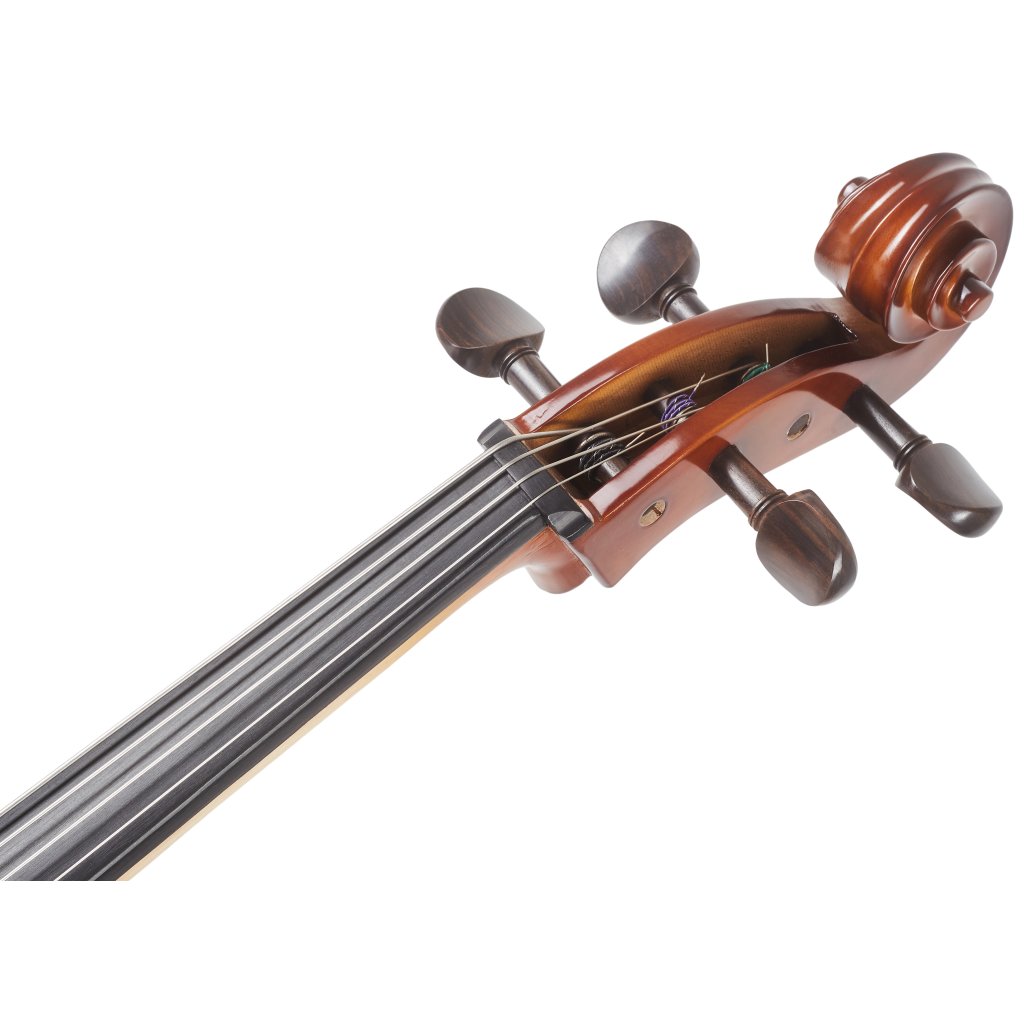Toto ručne vyrobené violončelo je ideálnou voľbou najmä pre začiatočníkov, ale aj pre pokročilejších hráčov, ktorí hľadajú kvalitný nástroj za prijateľnú cenu. Vrchná doska je tradične vyrobená z výberového smrekového dreva, zatiaľ čo zadná doska a luby sú z javora. Rezonančná doska a hmatník sú z ebenového dreva, zatiaľ čo kovové struny sú osadené presnými ladičkami. Okrem samotného nástroja nájdete v balení aj sláčik s ebenovou žabkou a prepravné puzdro s 10 mm polstrovaním.