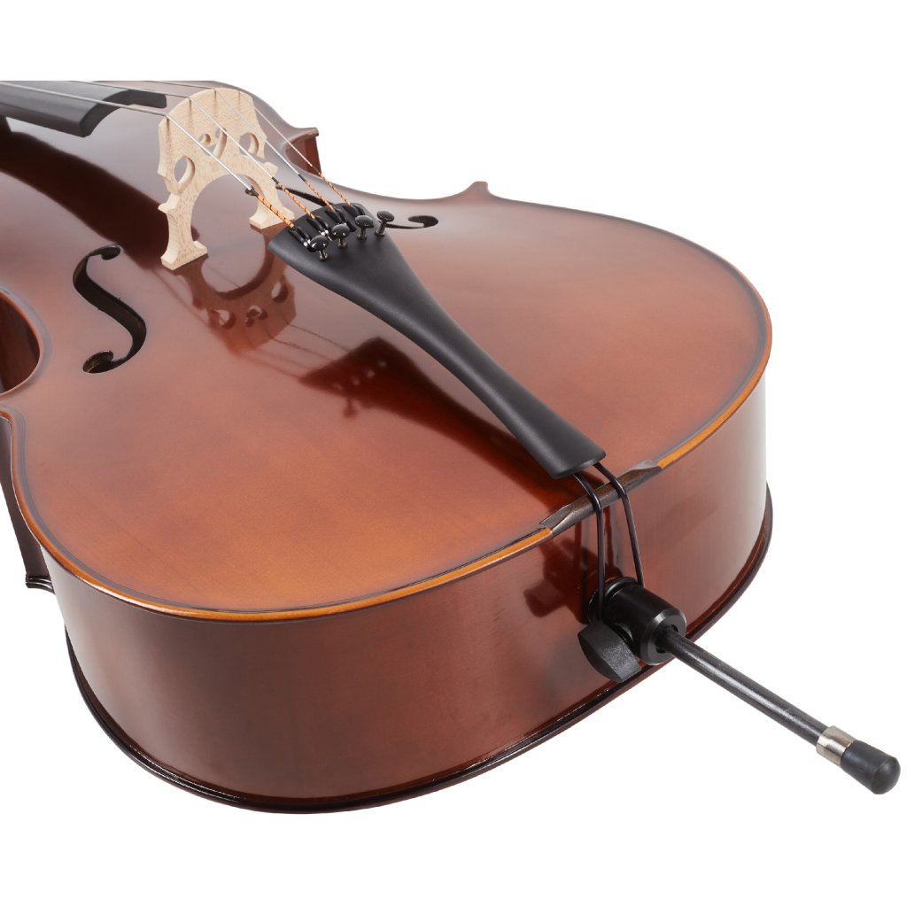 Toto ručne vyrobené violončelo je ideálnou voľbou najmä pre začiatočníkov, ale aj pre pokročilejších hráčov, ktorí hľadajú kvalitný nástroj za prijateľnú cenu. Vrchná doska je tradične vyrobená z výberového smrekového dreva, zatiaľ čo zadná doska a luby sú z javora. Rezonančná doska a hmatník sú z ebenového dreva, zatiaľ čo kovové struny sú osadené presnými ladičkami. Okrem samotného nástroja nájdete v balení aj sláčik s ebenovou žabkou a prepravné puzdro s 10 mm polstrovaním.