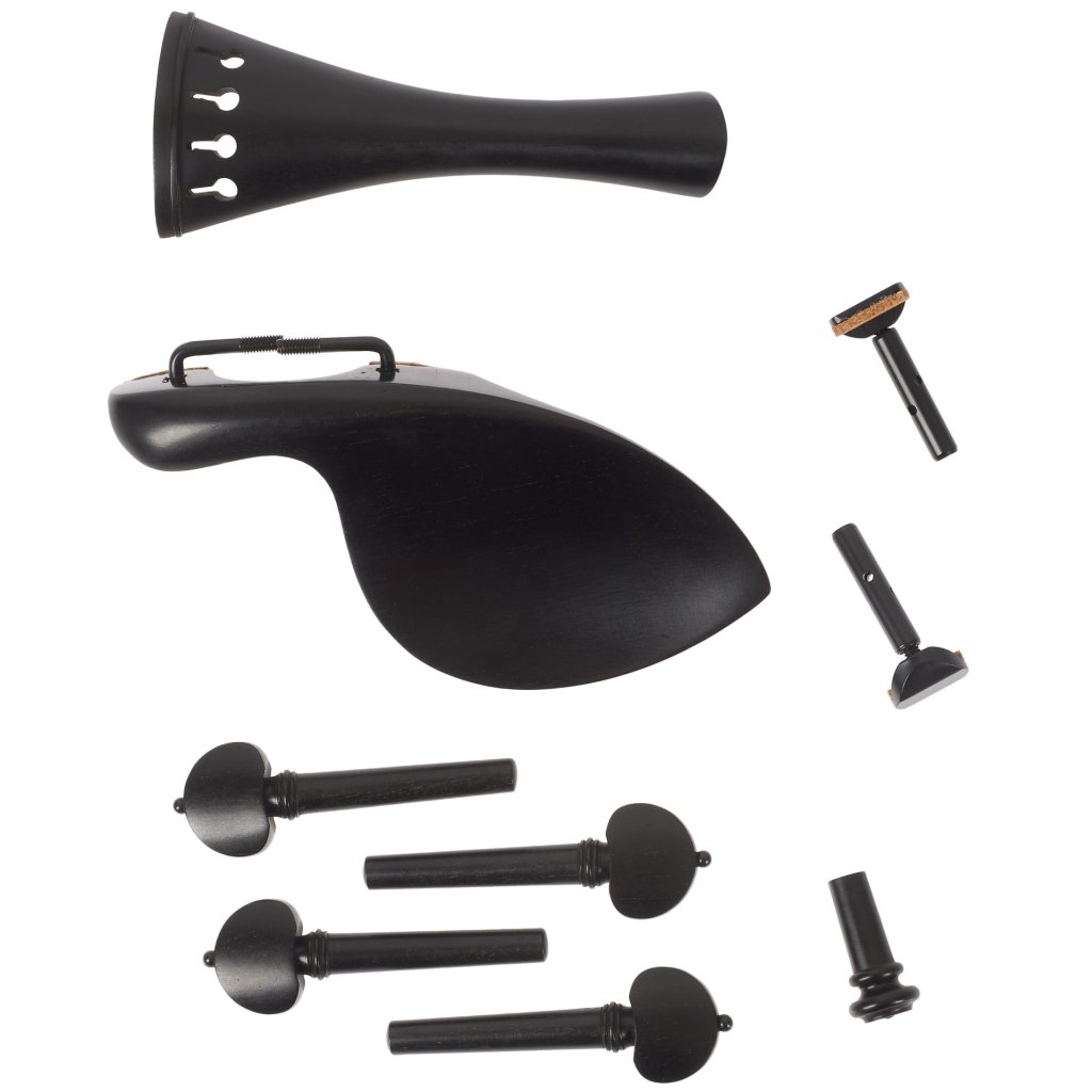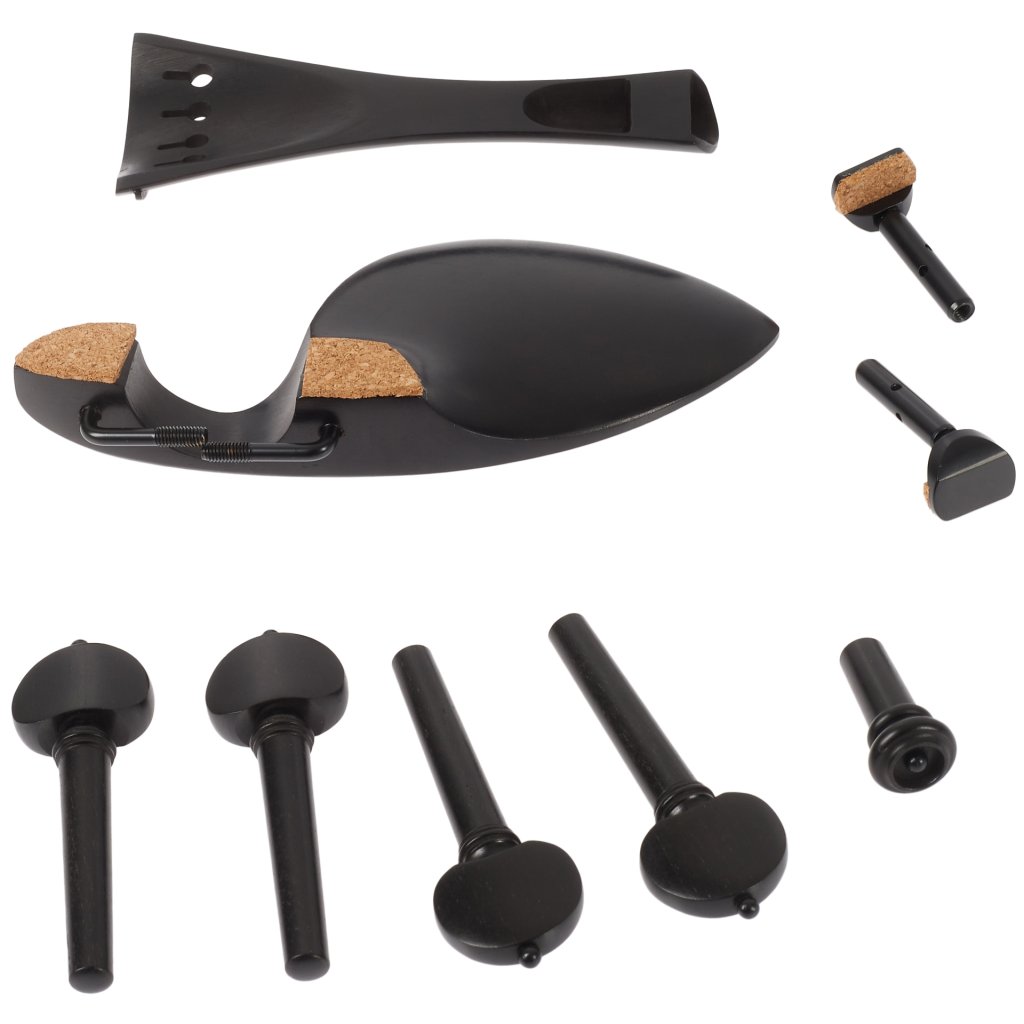 A-11 je garnitura z ebenového dřeva od společnosti Bacio vhodná pro 4/4 housle. V balení naleznete struník, podbradek, ladící kolíčky a žalud.