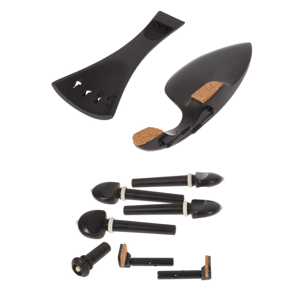 A-72 je prémiová garnitura z ebenového dřeva od společnosti Bacio vhodná pro 4/4 housle. V balení naleznete struník, podbradek, ladící kolíčky a žalud.