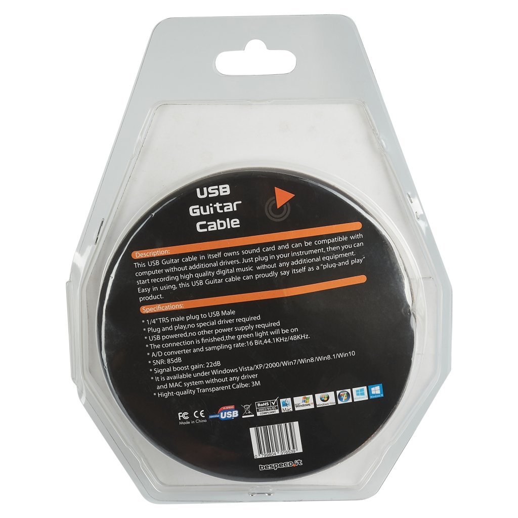 BMUSB300 je USB/audio kábel so zabudovanou zvukovou kartou. Vďaka nemu môžete veľmi jednoducho prenášať zvuk gitary do počítača (PC alebo Mac) bez potreby ďalšieho vybavenia. Kábel má dĺžku 3 metre a na jeho fungovanie nie je potrebné inštalovať žiadne ovládače.