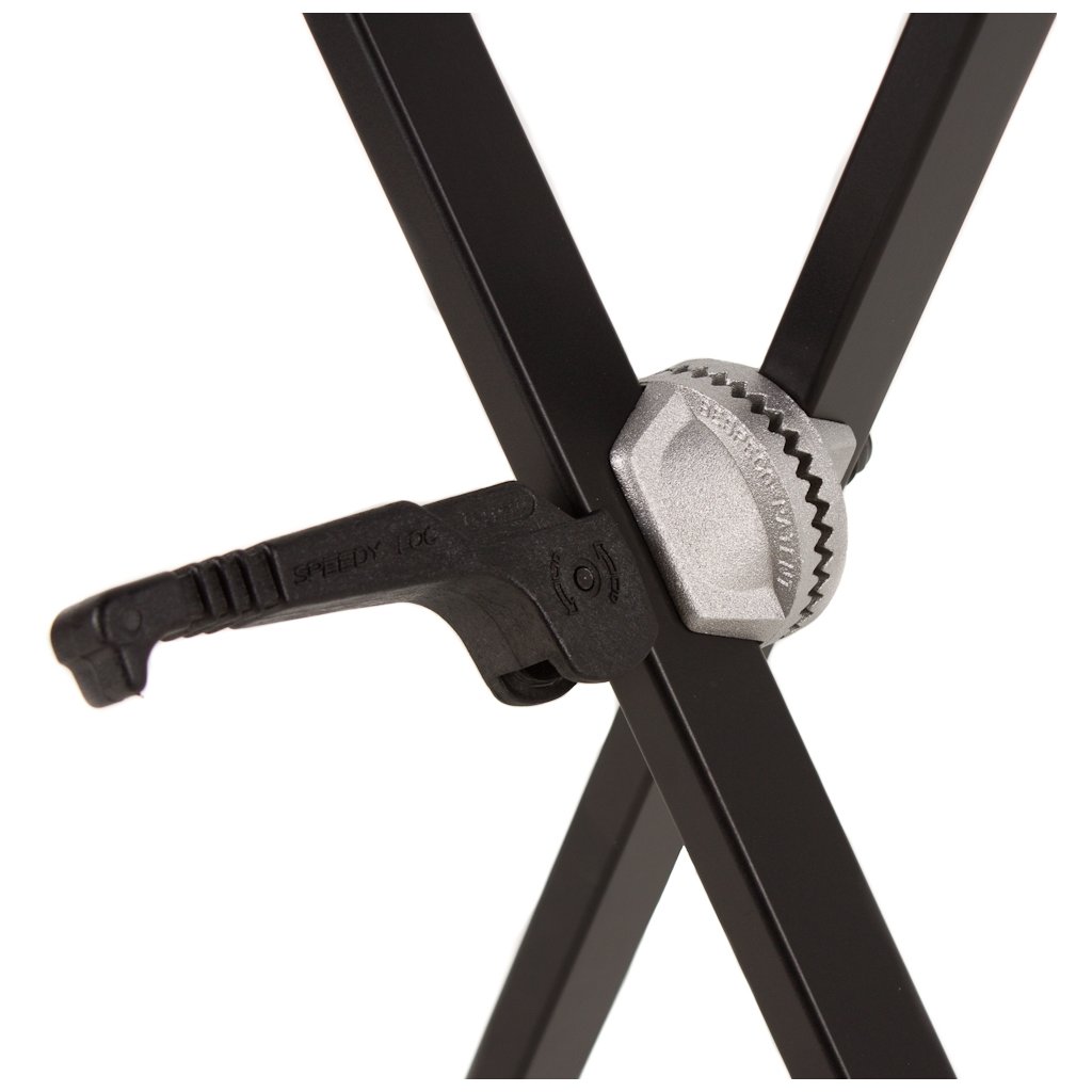 Malý stojan na detské a menšie kľúče s plastovou uzamykacou páčkou. Stojan má rýchly mechanizmus nastavenia (0°-180°) CROCODILE SYSTEM. Oceľová konštrukcia zaručuje maximálnu stabilitu a robustnosť.