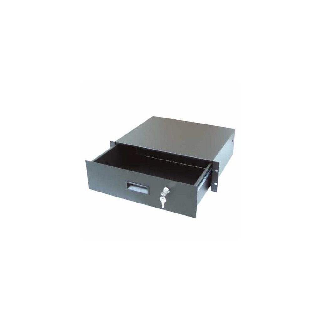Uzamykateľná železná polica pre 19" 3U rack. Obsahuje 3 samostatné stojany.