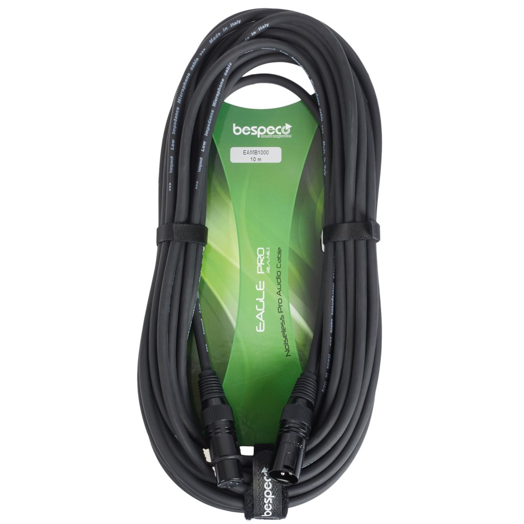 Tento mikrofónový kábel Bespeco Eagle Pro Series je vybavený vodičom z 98 % bezkyslíkatej medi (OFC) a vnútorným polovodivým PVC plášťom, ktorý nevytvára šum. Ku kvalite zvuku prispieva aj špirálové tienenie na viac ako 92 percentách vodičov alebo pozlátené konektory s kovovým telom. PVC a vulkanizovaný silikónový plášť je samozrejme odolný a pružný.