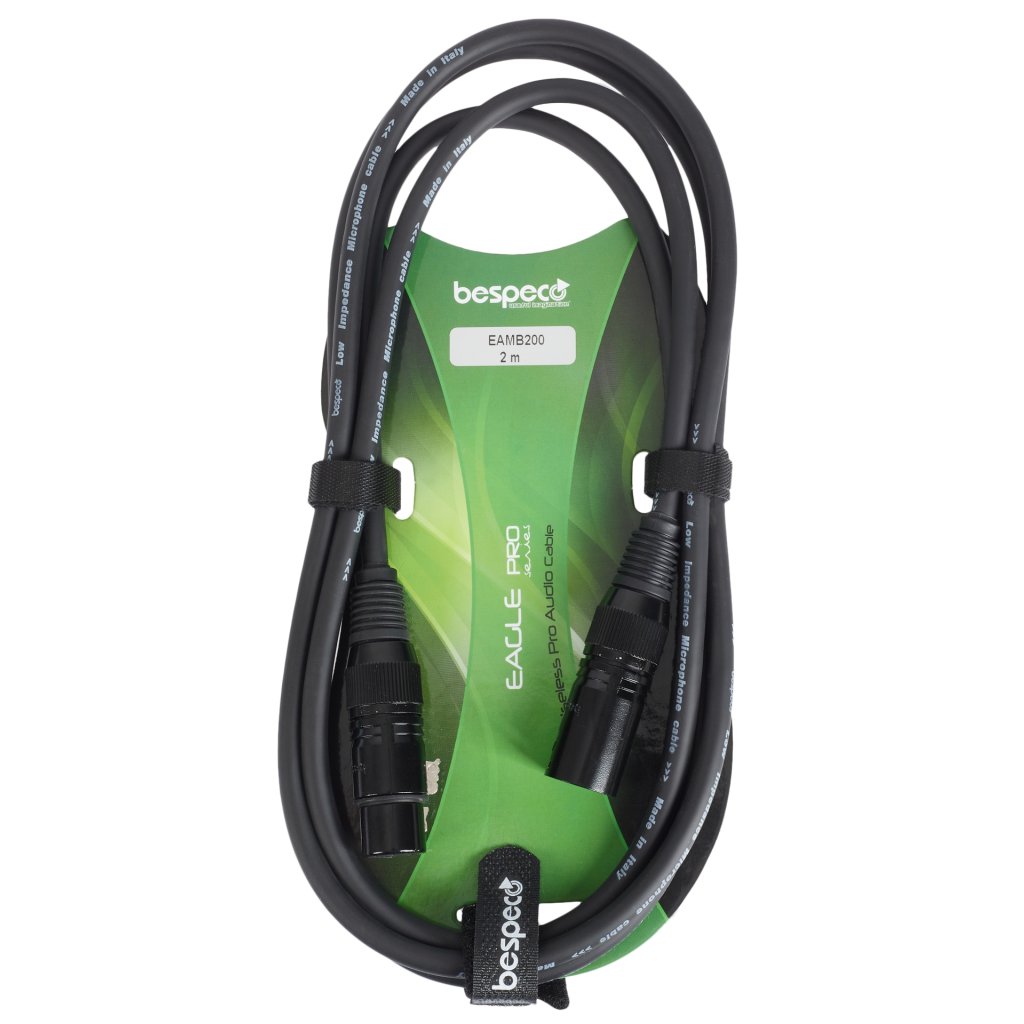 Tento mikrofónový kábel Bespeco Eagle Pro Series je vybavený vodičom z 98 % bezkyslíkatej medi (OFC) a vnútorným polovodivým PVC plášťom, ktorý nevytvára šum. Ku kvalite zvuku prispieva aj špirálové tienenie na viac ako 92 percentách vodičov alebo pozlátené konektory s kovovým telom. PVC a vulkanizovaný silikónový plášť je samozrejme odolný a pružný.