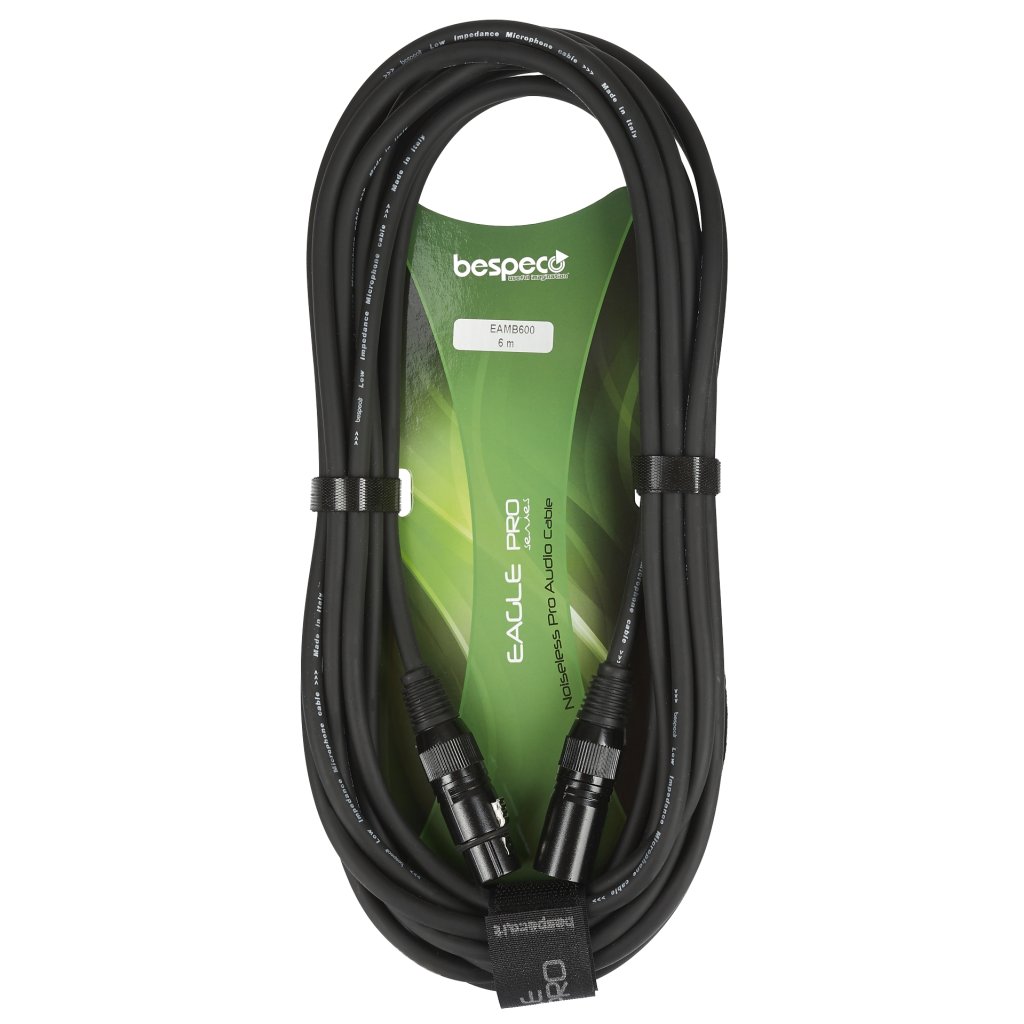 Tento mikrofónový kábel Bespeco Eagle Pro Series je vybavený vodičom z 98 % bezkyslíkatej medi (OFC) a vnútorným polovodivým PVC plášťom, ktorý nevytvára šum. Ku kvalite zvuku prispieva aj špirálové tienenie na viac ako 92 percentách vodičov alebo pozlátené konektory s kovovým telom. PVC a vulkanizovaný silikónový plášť je samozrejme odolný a pružný.