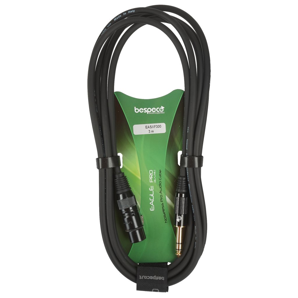 Tento mikrofónový kábel Bespeco Eagle Pro Series je vybavený vodičom z 98 % bezkyslíkatej medi (OFC) a vnútorným polovodivým PVC plášťom, ktorý nevytvára šum. Ku kvalite zvuku prispieva aj špirálové tienenie na viac ako 92 percentách vodičov alebo pozlátené konektory s kovovým telom. PVC a vulkanizovaný silikónový plášť je samozrejme odolný a pružný.