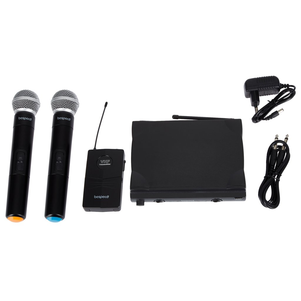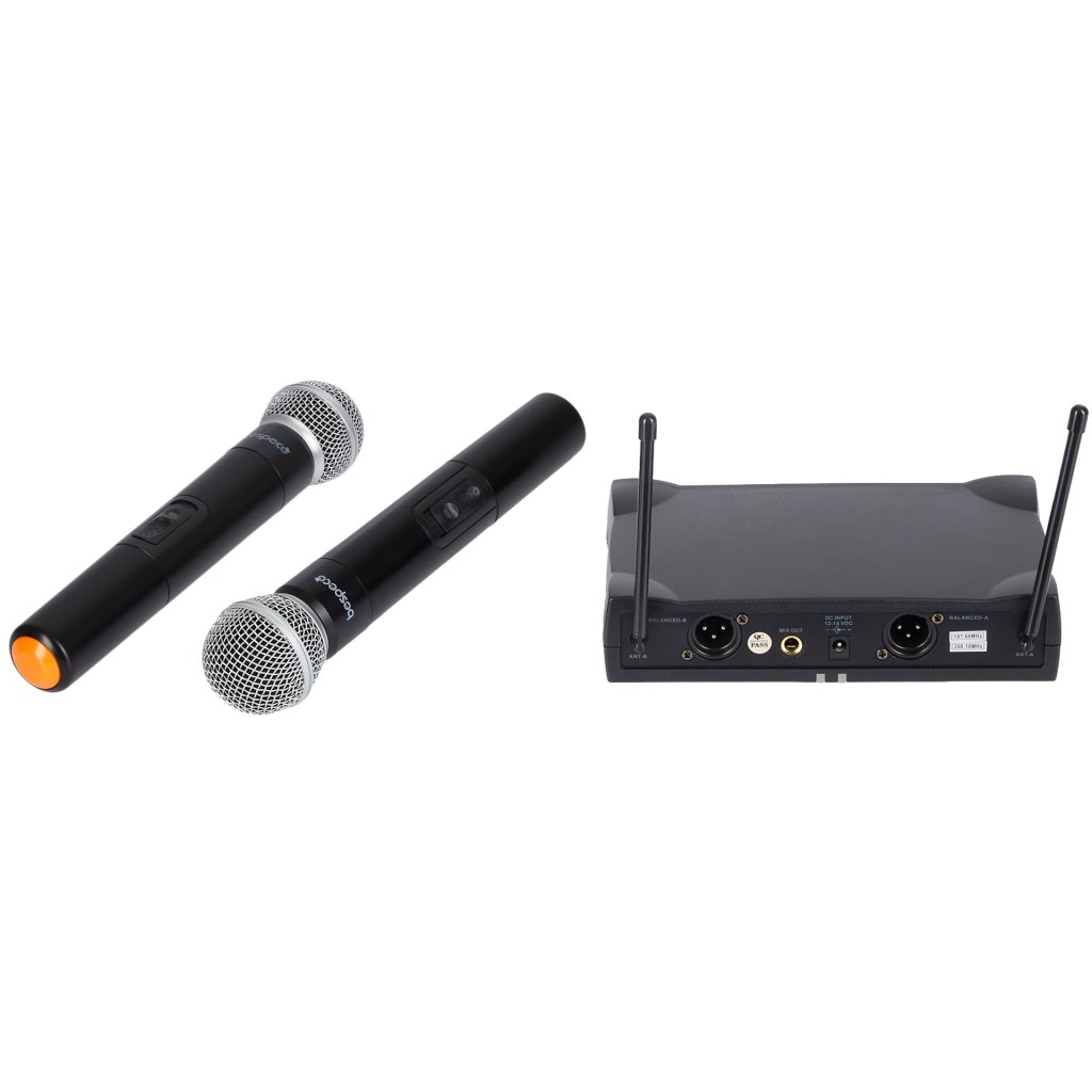 Duálny bezdrôtový set obsahujúci dva dynamické ručné mikrofóny so systémom VHF vhodný pre moderátorov, karaoke párty alebo živé spevácke vystúpenia.