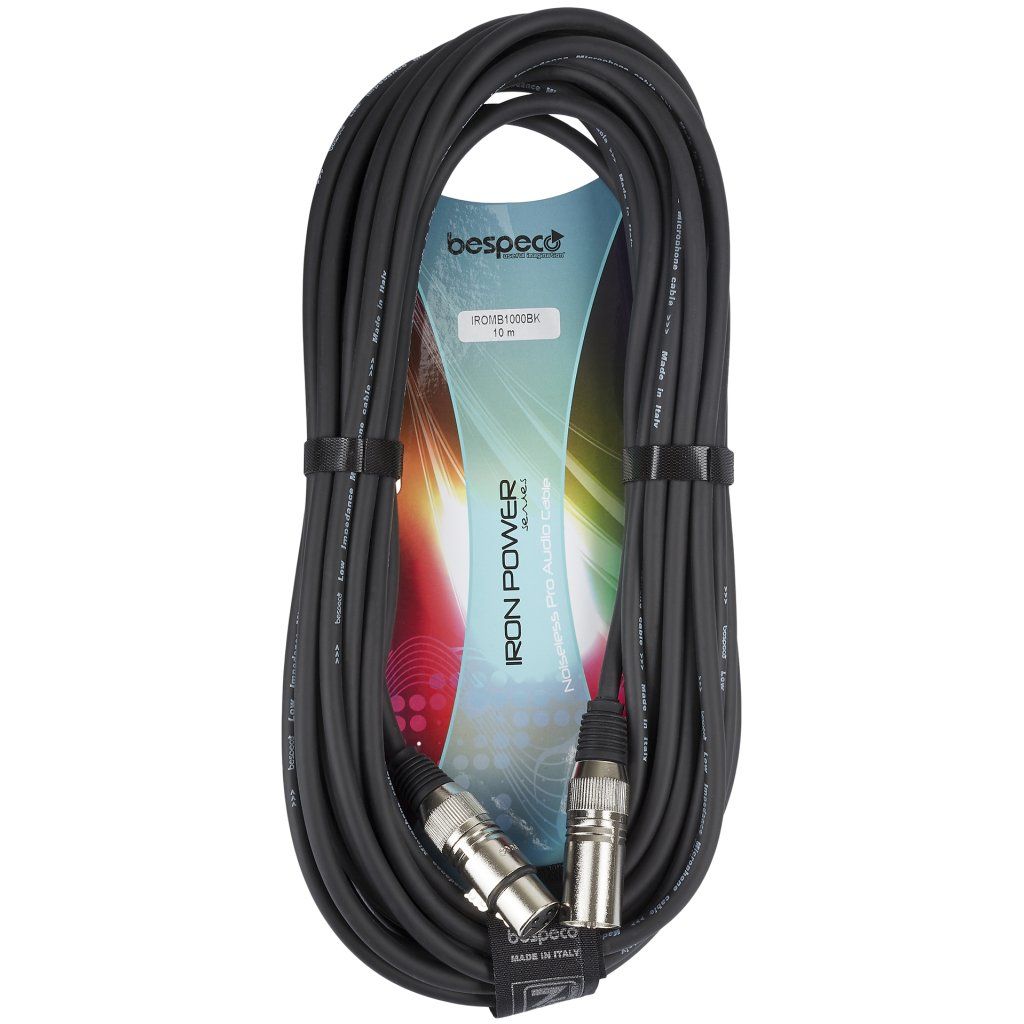 Mikrofónový kábel Bespeco zo série Iron. Vnútro kábla je vyrobené z 98 % OFC medi, konektory sú z odolnej ocele a povrch je vyrobený z extrémne pevného PVC pre maximálnu flexibilitu a dlhú životnosť. Súčasťou balenia je pár popruhov na suchý zips na jednoduchú prepravu.