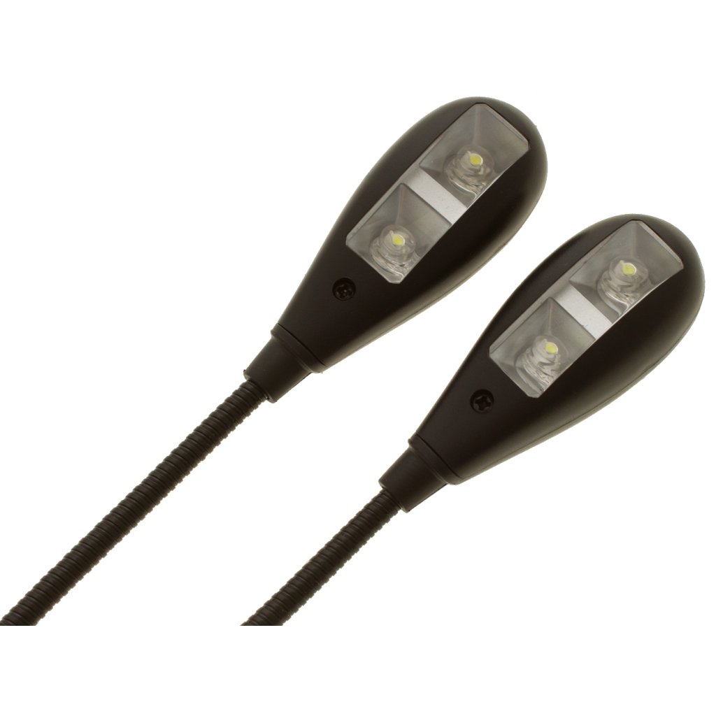 Praktická lampa s dvoma samostatnými ohybnými ramenami je ideálna na klavír alebo stojan na noty, ale vďaka nastaviteľnému a pogumovanému klipu ju môžete pripevniť prakticky kamkoľvek. Každé rameno má dvojicu žiaroviek LED so samostatnými spínačmi, pre stlmené osvetlenie nie je problém rozsvietiť každé rameno zvlášť. Dĺžka ramien je 19 cm, takže svetlo môžete nasmerovať presne tam, kam potrebujete.