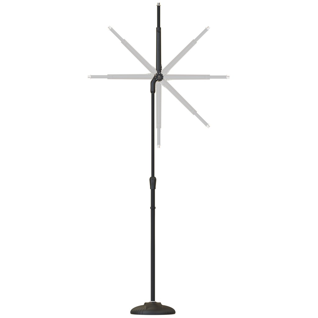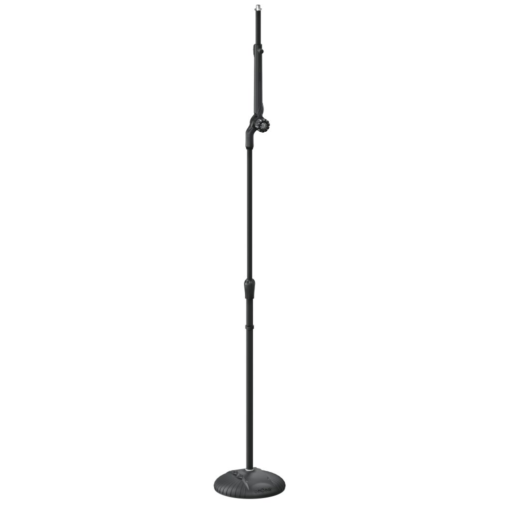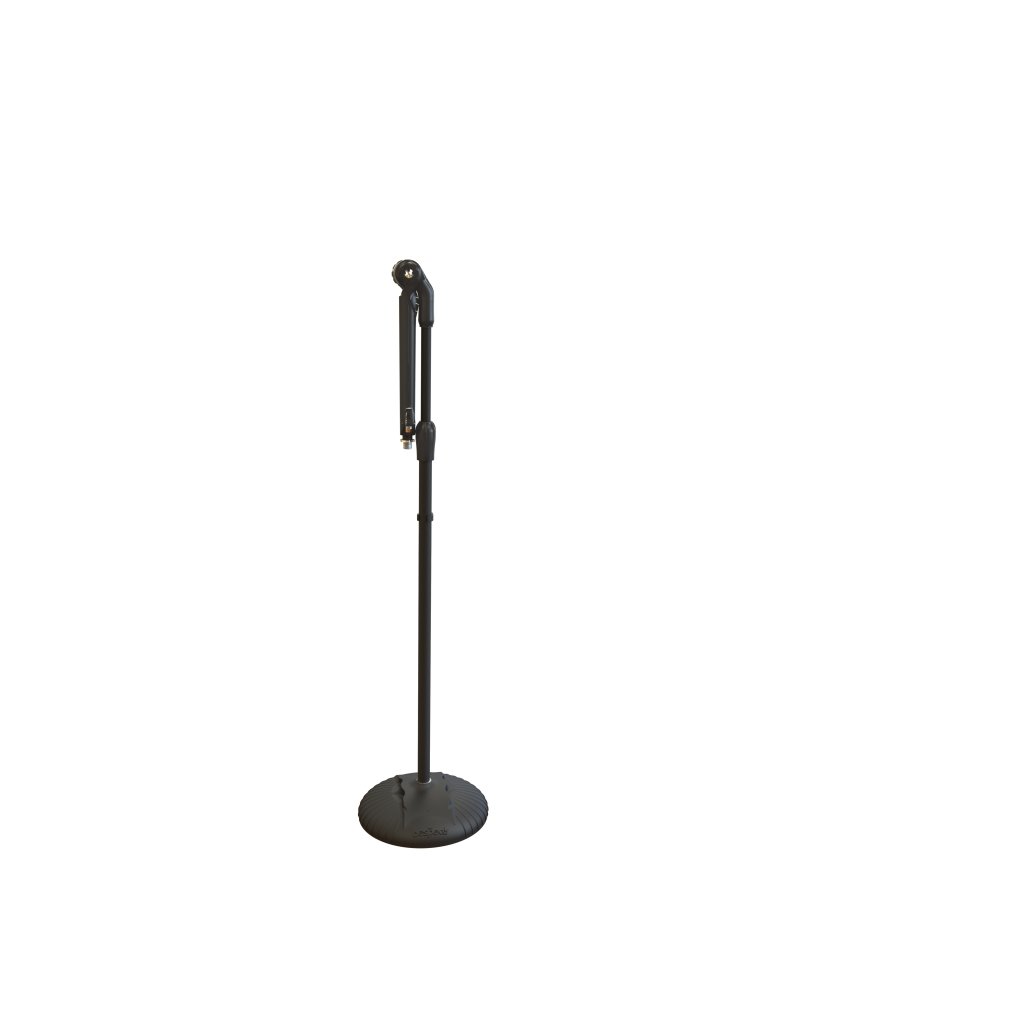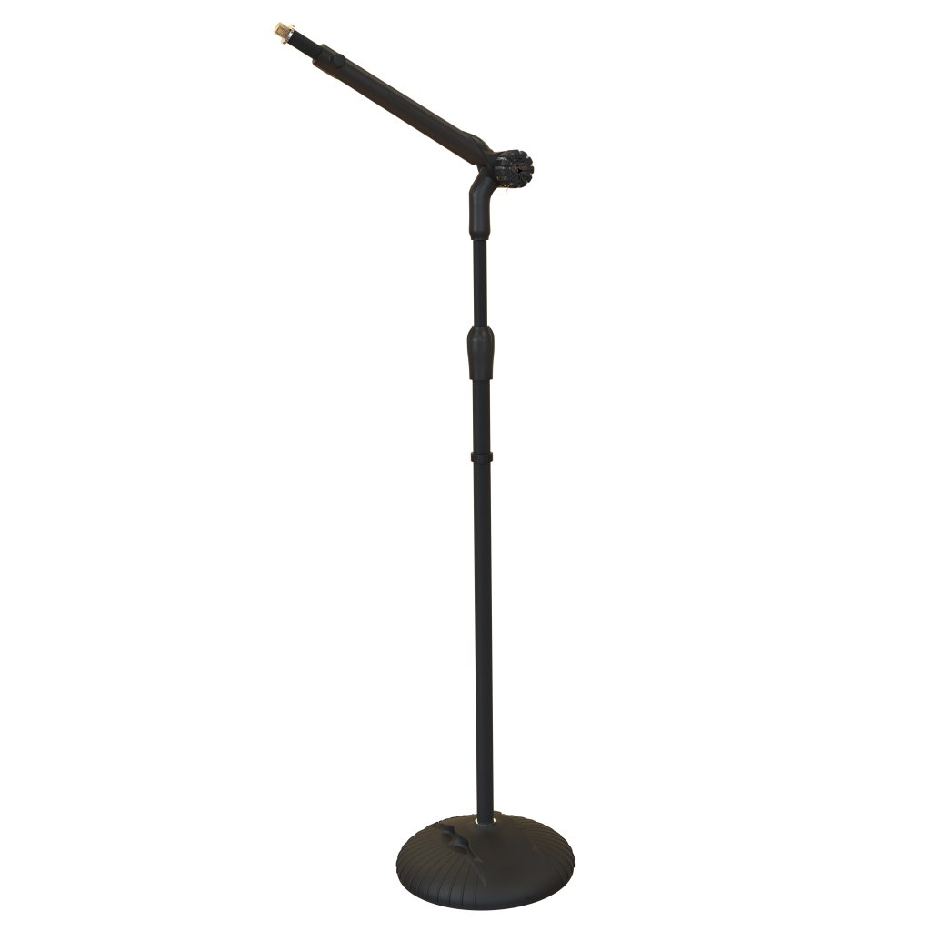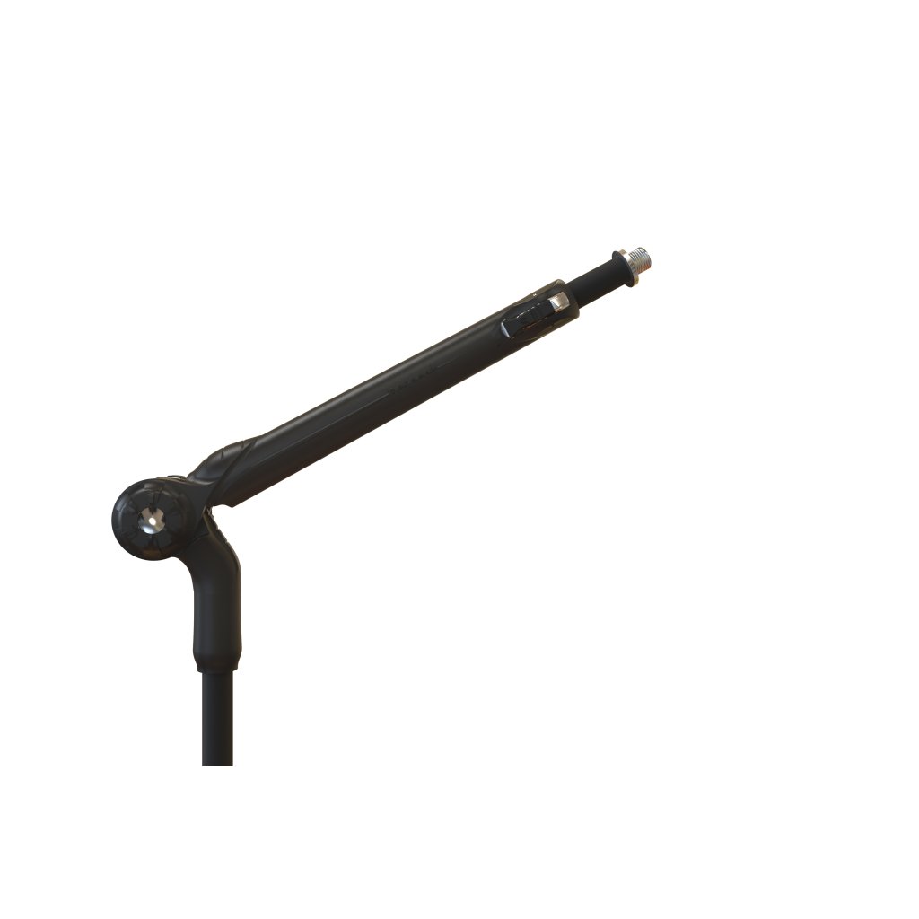 Stojan na mikrofón dva v jednom. Stredový kĺb sa môže otáčať o 270°, takže stojan funguje ako rovný stojan aj ako stojan s teleskopickým ramenom. Vďaka tejto konštrukcii je veľmi flexibilný z hľadiska priestoru. Stredový kĺb je vyrobený z hliníkovej zliatiny a vďaka pogumovanej povrchovej úprave sa dá ľahko utiahnuť. Dĺžka teleskopickej tyče sa nastavuje pomocou samozatváracieho mechanizmu s bezpečnostnou poistkou jedným stlačením. Nad stredovým kĺbom sa nachádza miesto pre krompáče.