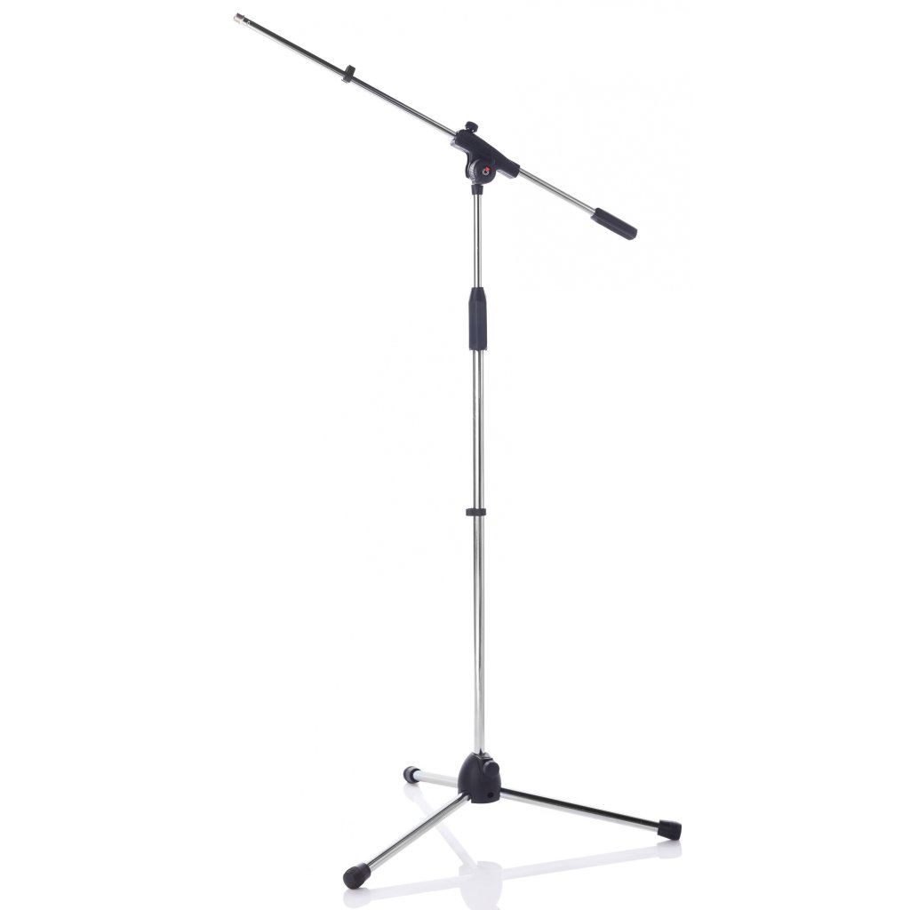 Kvalitný nastaviteľný mikrofónový stojan s trojnohým podstavcom a mosadzným závitom. Súčasťou sú aj káblové svorky.